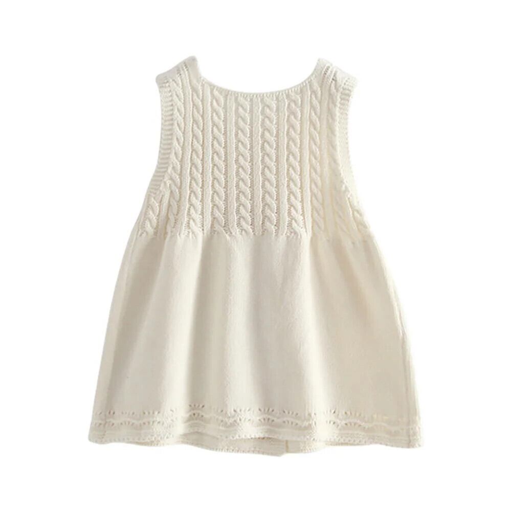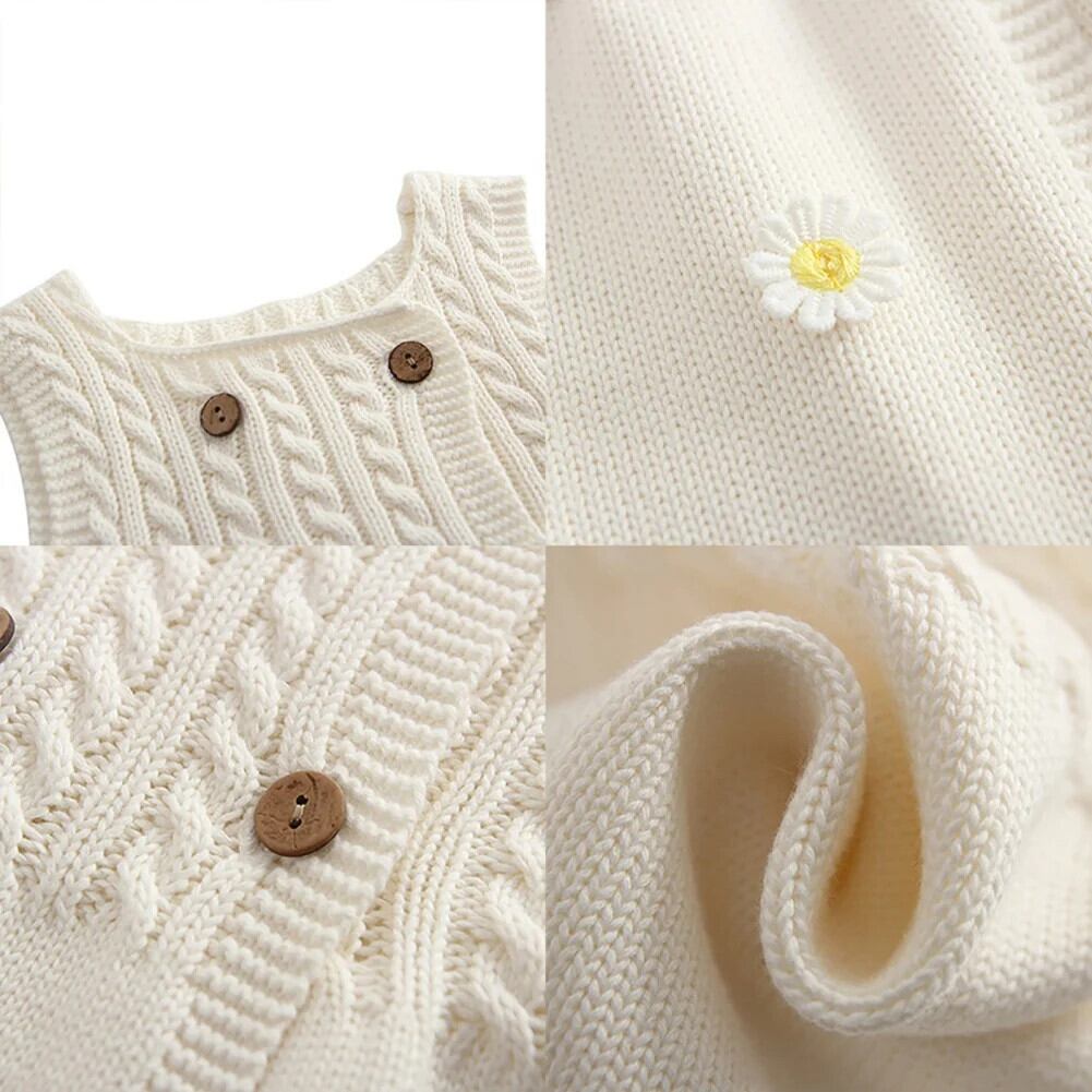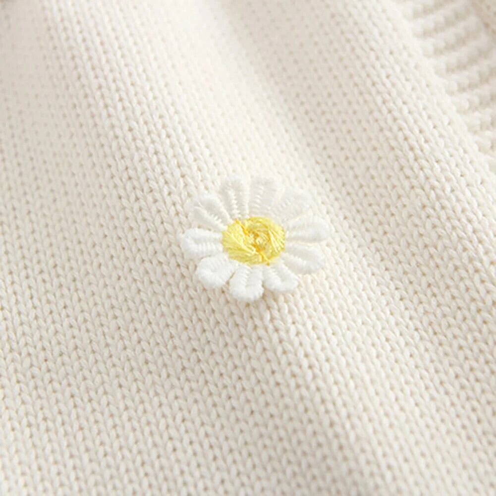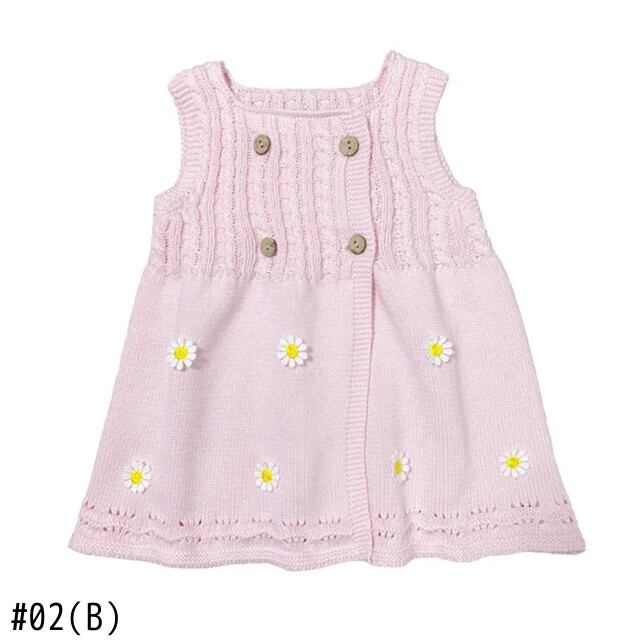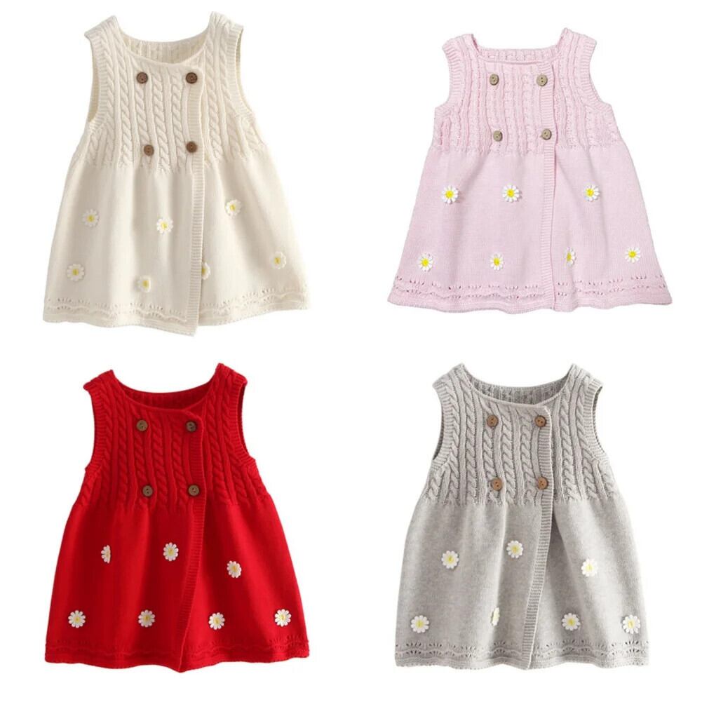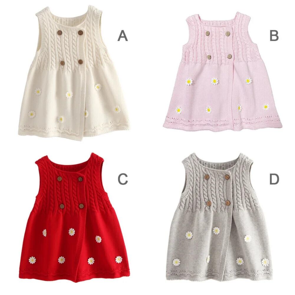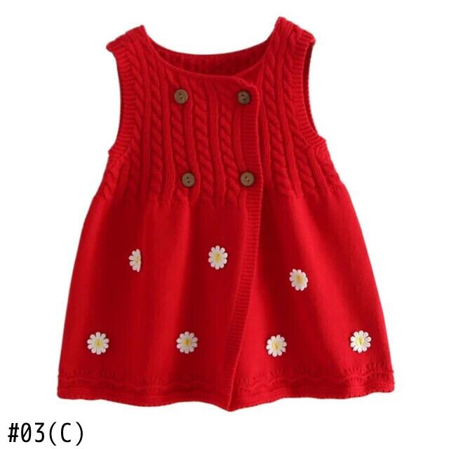 Baywell 幼児子供キッズベビー女子ニットドレスノースリーブ刺繍フラワーセーターカーディガンドレス レッド フラワーデザイン