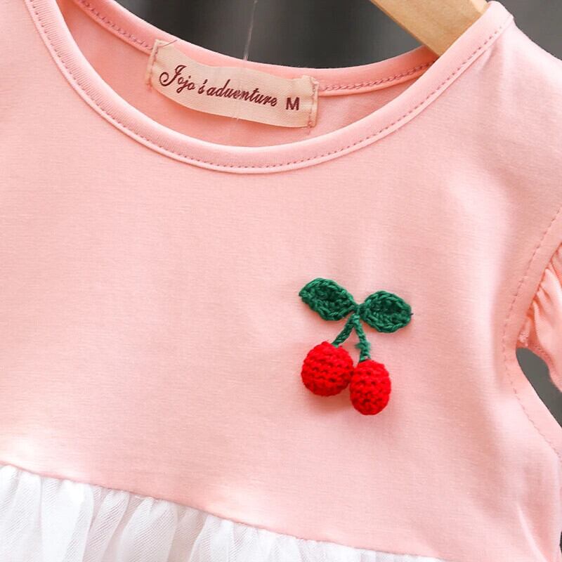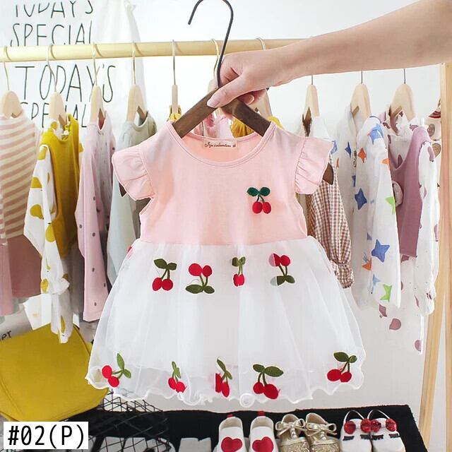 夏ベビー半袖スイートドレス小さ桜刺繍メッシュステッチドレスプリンセス 大人ガーリー スウィート キュート カジュアル サマー 夏物