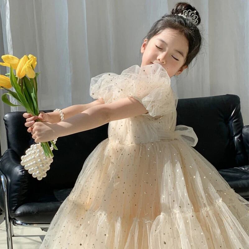 幼児女子サマードレス子供誕生日パーティードレスメッシュチュチュ結婚式子供ドレス 夏物 キッズ パニエ ペチコート