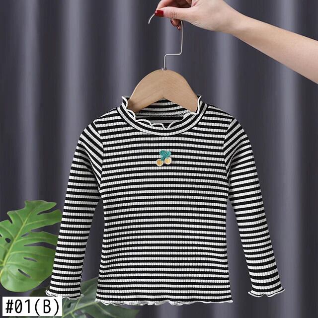 秋子供女子長袖 Tシャツ女子ストライプ上着秋子供子供用 ロング オータム 秋物 キッズ