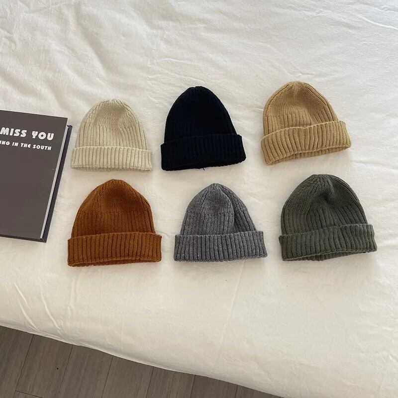 8 色ベビービーニー秋冬無地暖かいソフトキッズボーイズガールズキャップ子供ニット帽子 オータム 秋物 ウィンター 冬物 ソリッドカラー