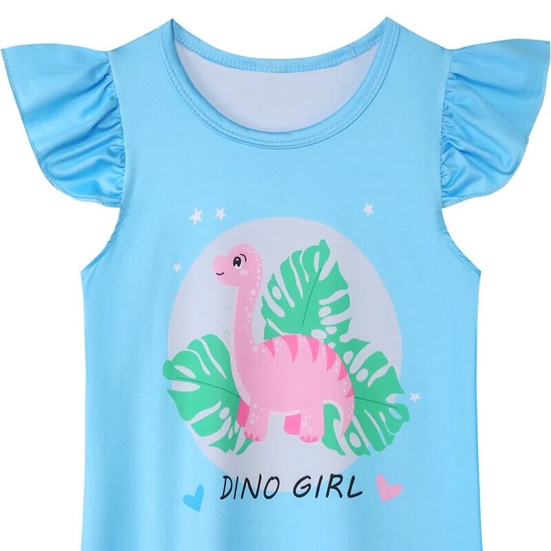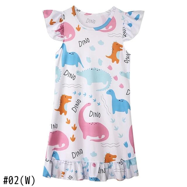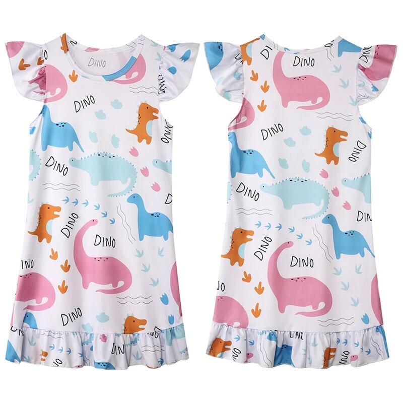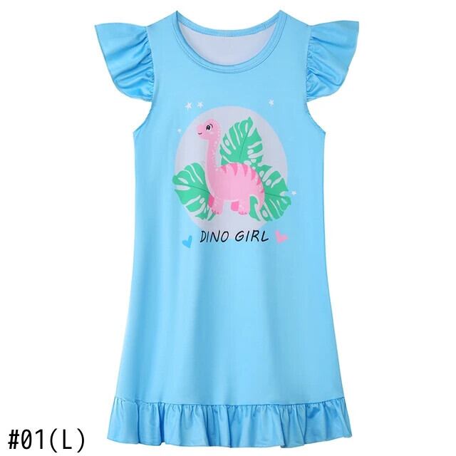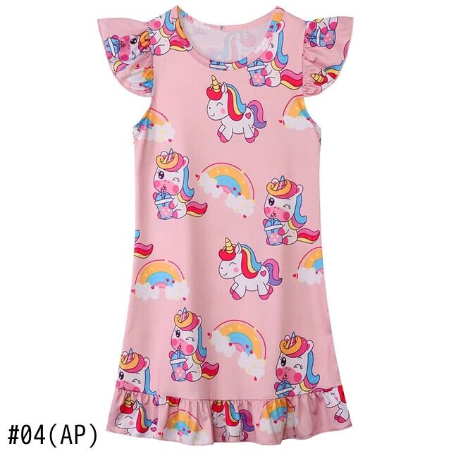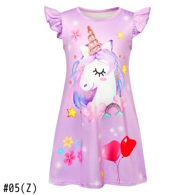女子漫画プリントドレス子供寝間着ドレス幼児夏フライングスリーブドレス子供 3-10Yrs サマー 夏物 キッズ