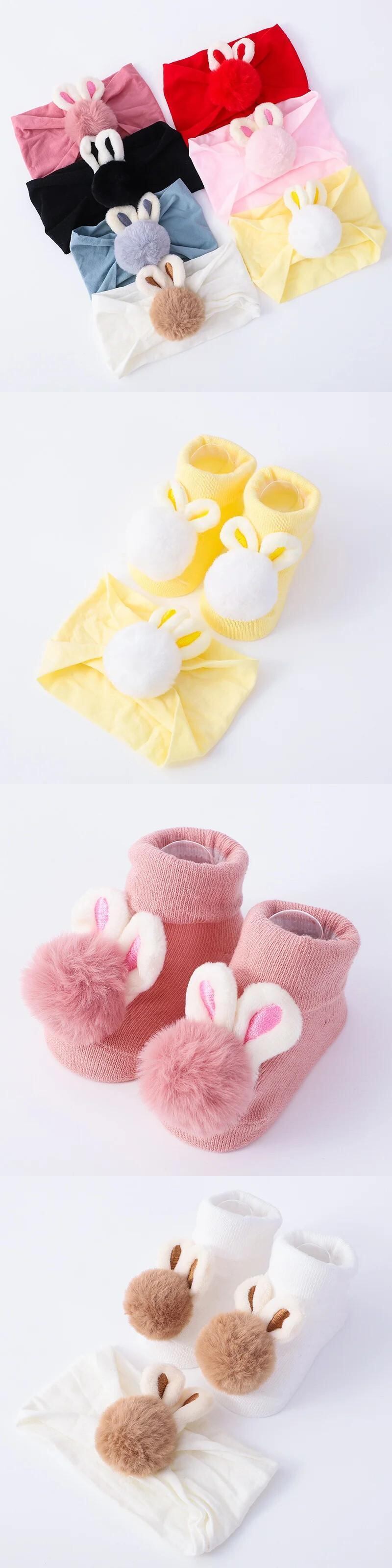 2 個ベビーソックスヘッドバンドセットかわいいぬいぐるみボール生まれショートソックスかわいいキッズ女赤ちゃんヘアバンド靴下 Po 小道具 大人ガーリー スウィート キュート カジュアル タイツ ストッキング ヘアアクセサリー