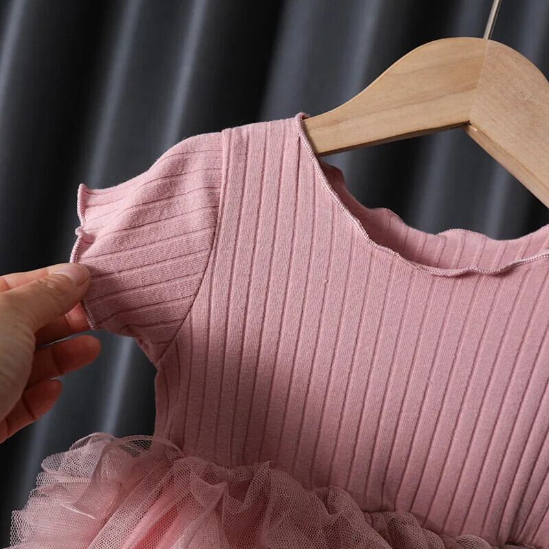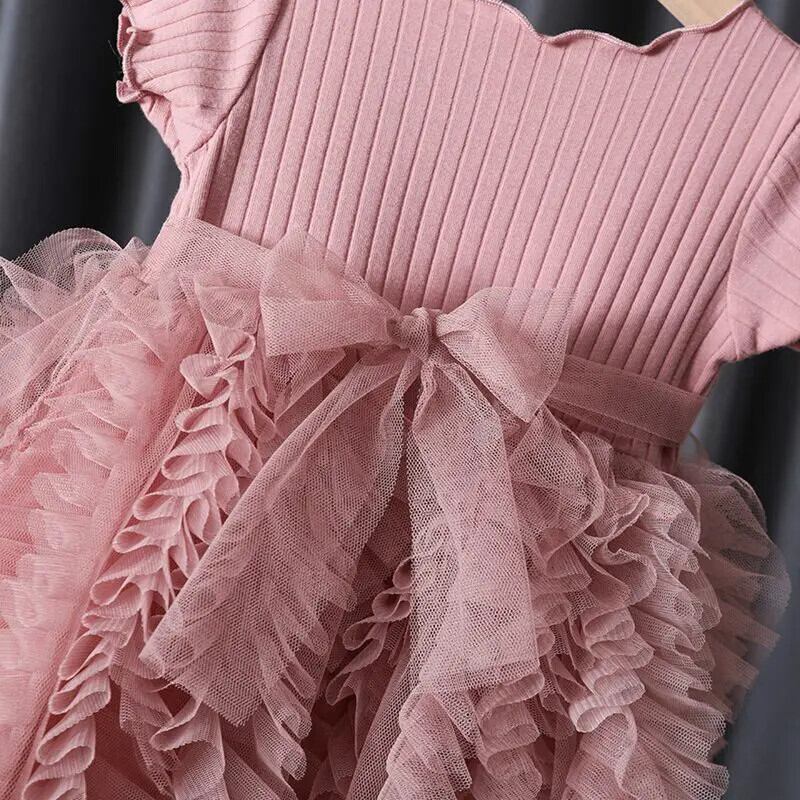 子供女子パーティードレス誕生日女赤ちゃんふわふわスプライシングケーキソリッドドレスサマーキッズドレス 夏物 ソリッドカラー
