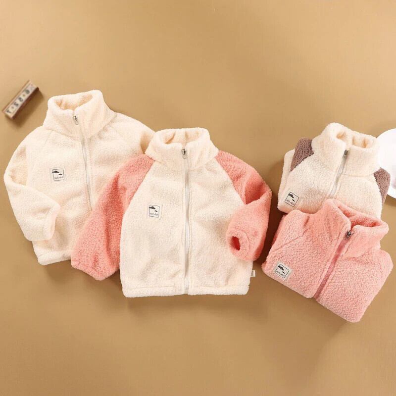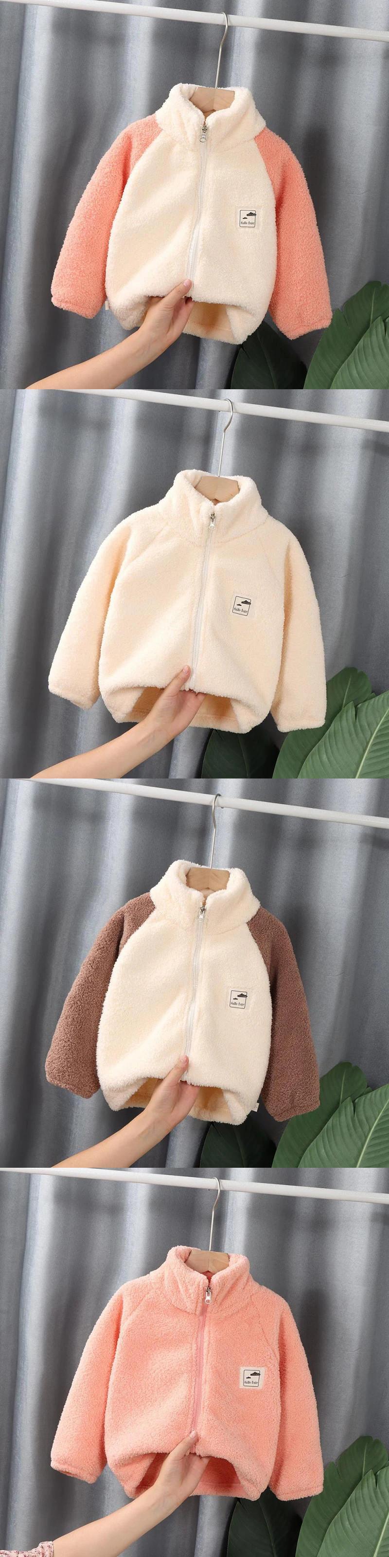 秋冬子供コート幼児ベビー少年少女ラムウール暖かいジャケットポケットベルベットカーディガン生き抜く子供 オータム 秋物 ウィンター 冬物 キッズ