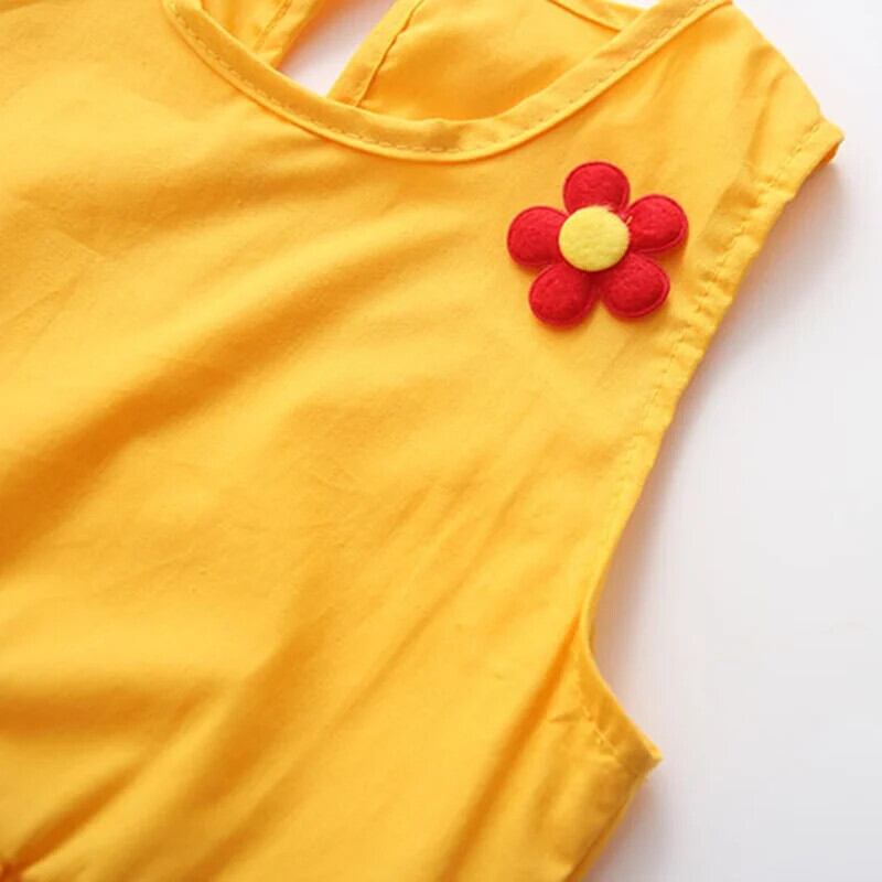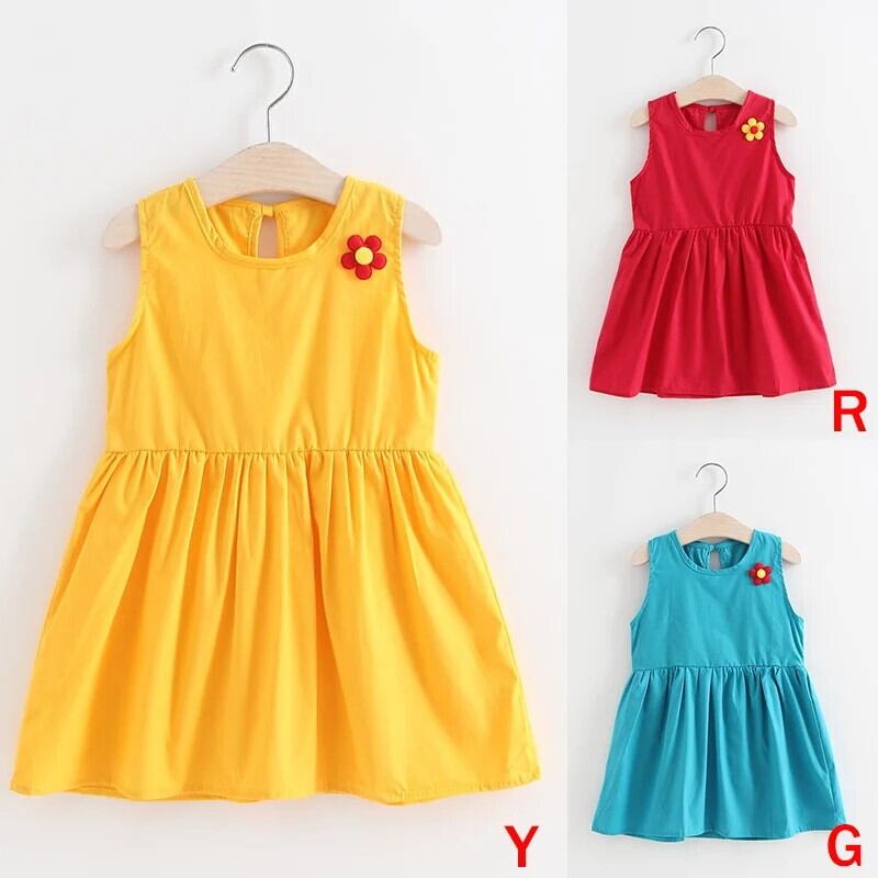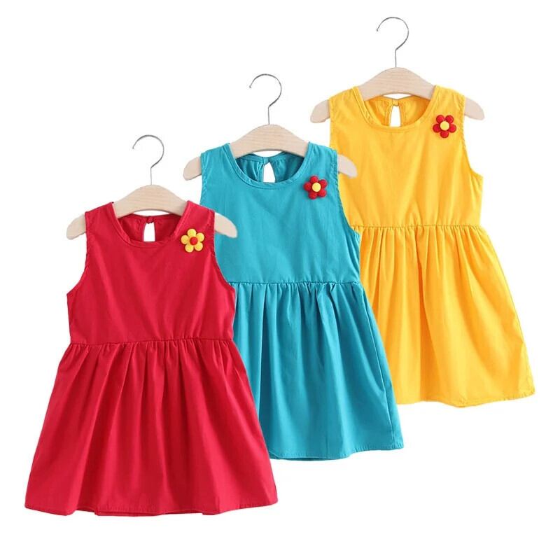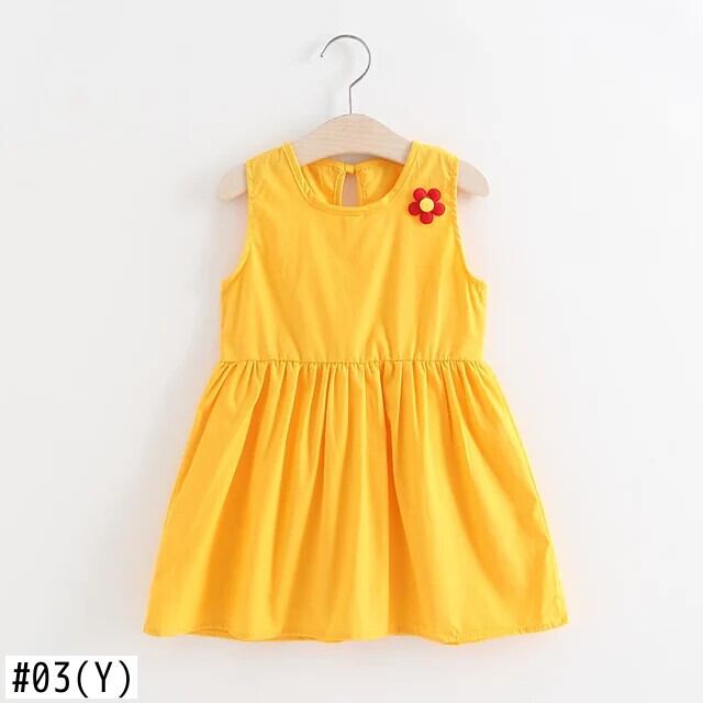 赤ちゃん女子ドレス夏子供キッズ女子ラウンドネックフラワー無地ノースリーブドレス子供ドレス サマー 夏物 Oネック ソリッドカラー フラワーデザイン