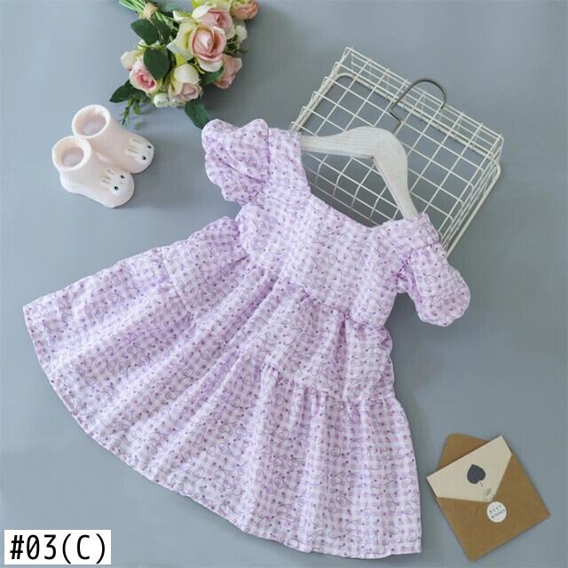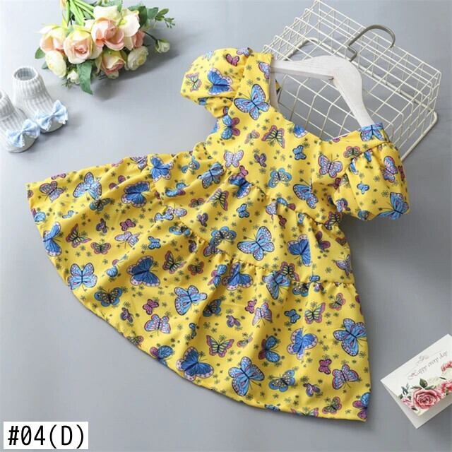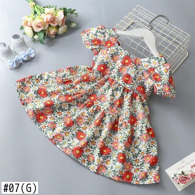 夏キッズ女子ドレスパフスリーブ女赤ちゃんフラワープリントちょう結びドレスガールドレス リボン サマー 夏物 フラワーデザイン