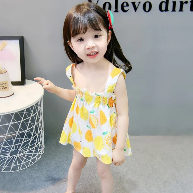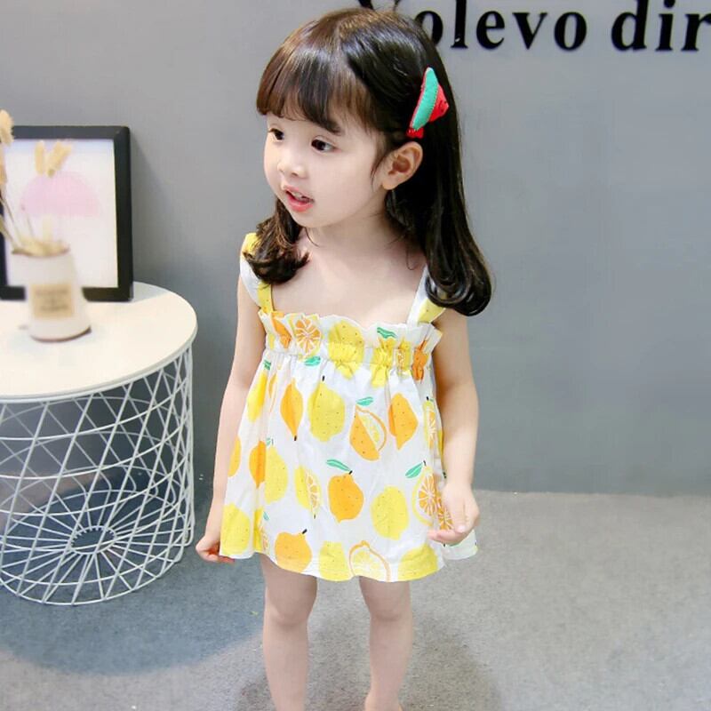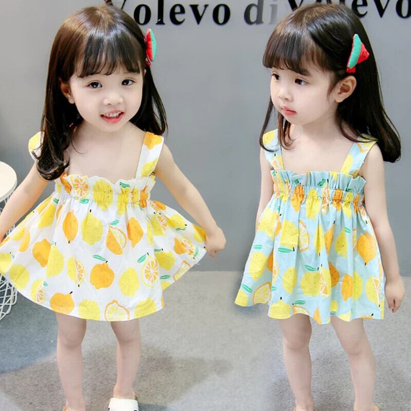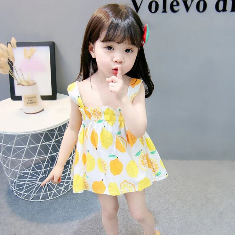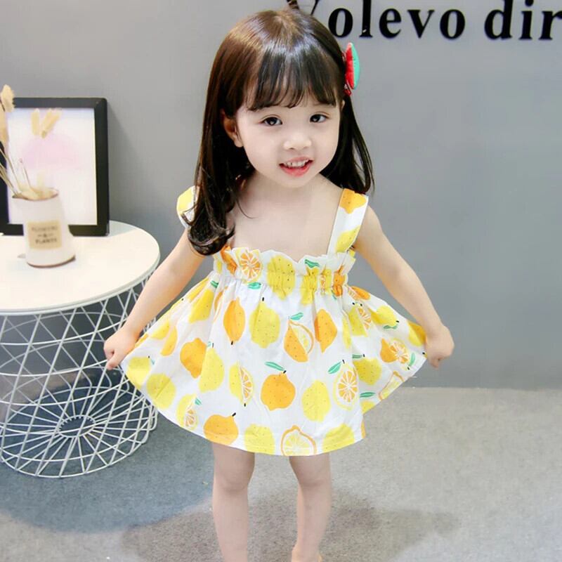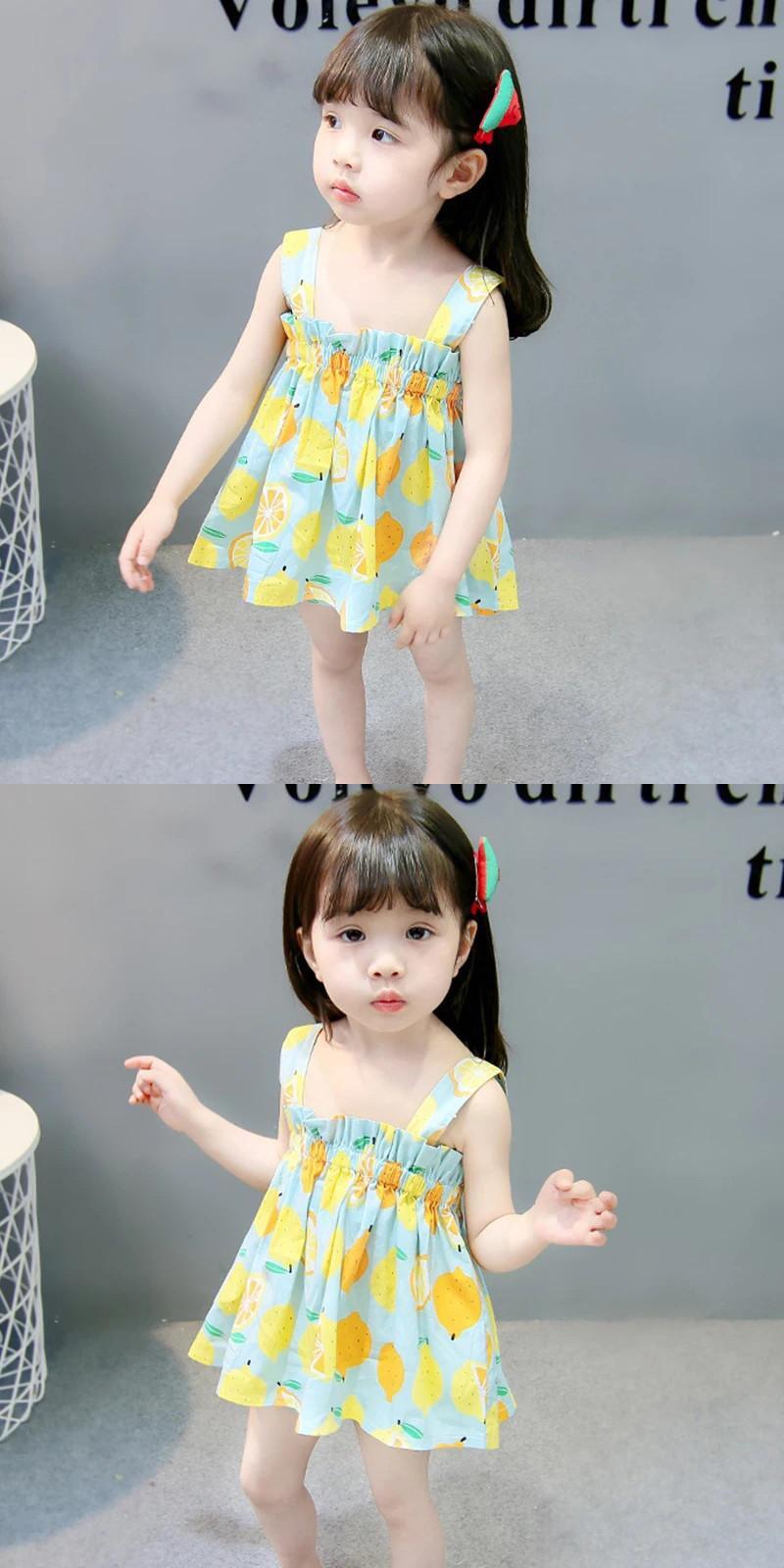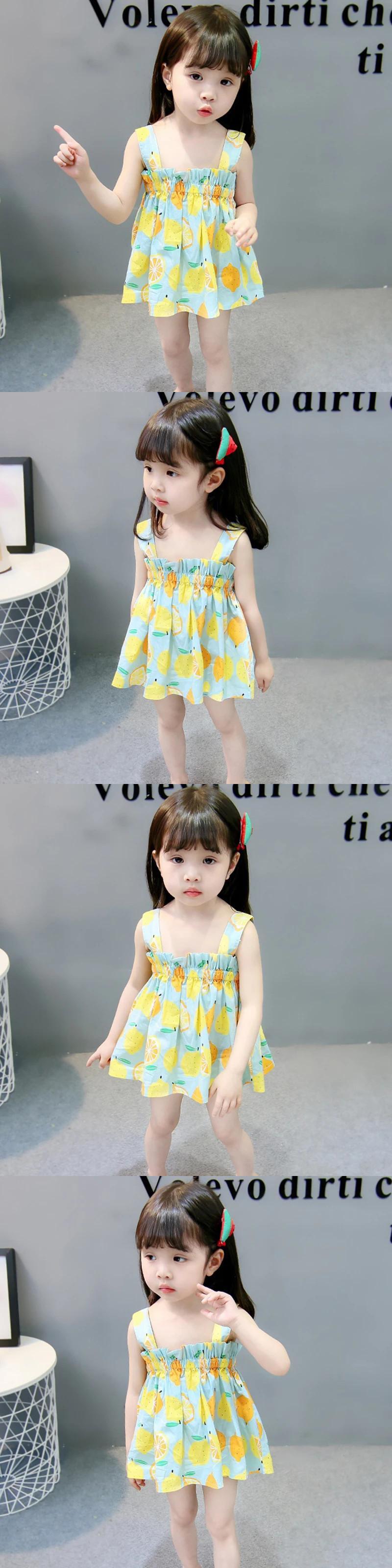 夏子供女赤ちゃんドレス幼児キッズかわいい弾性バンドフルーツプリントサスペンダードレス エラスティック 伸縮 大人ガーリー スウィート キュート カジュアル サマー 夏物