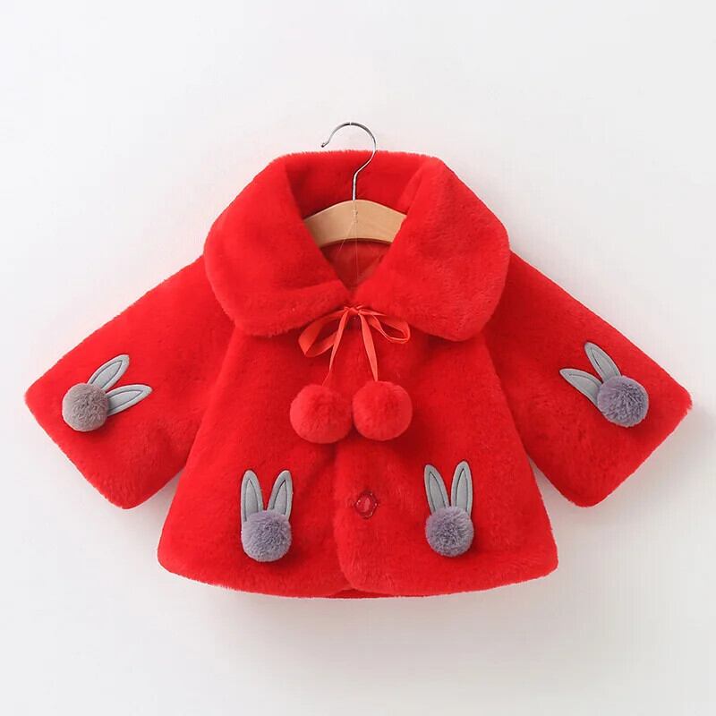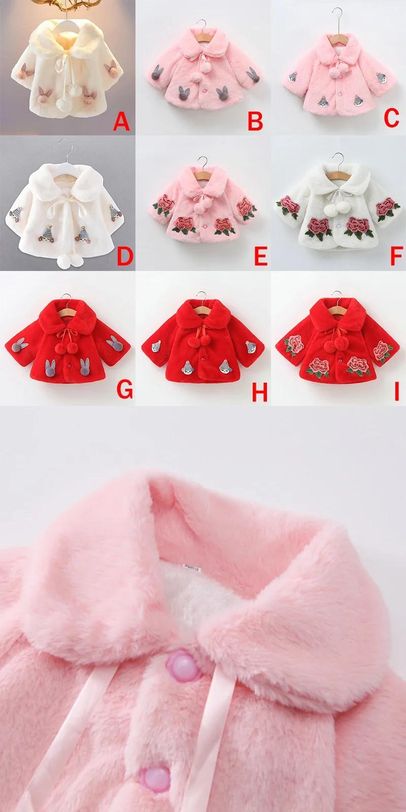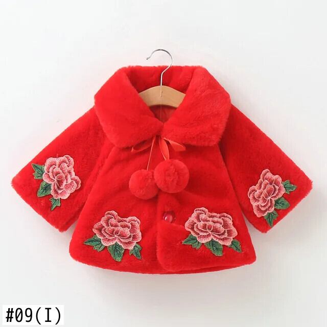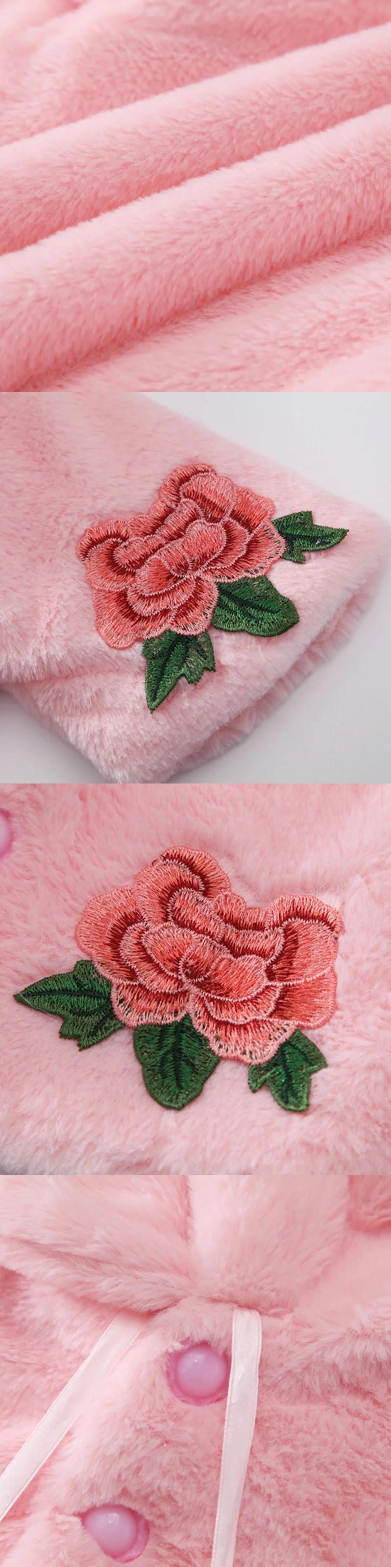 冬幼児女赤ちゃんフェイクファーフラワーケープコート暖かいジャケットクリスマス防寒着子供ラペル暖かいジャケット上着 ウィンター 冬物 フラワーデザイン