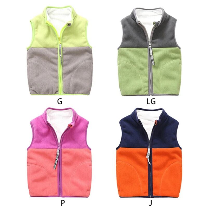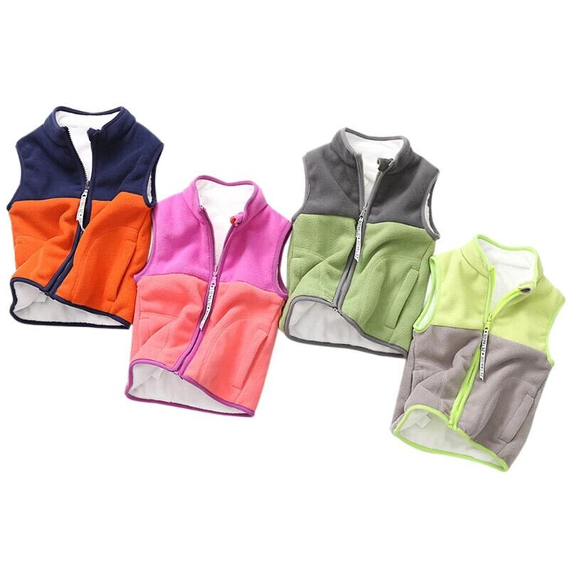 幼児ベビーボーイズガールズベスト秋冬ノースリーブポーラーフリースジッパーベストカラーブロックジャケットコート子供暖かい生き抜く オータム 秋物 ウィンター 冬物 キッズ
