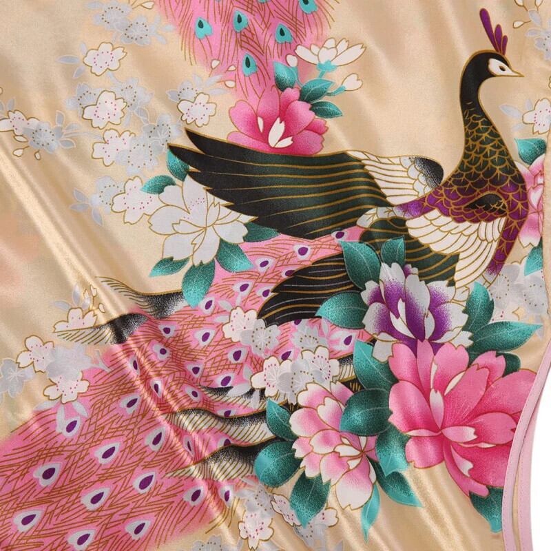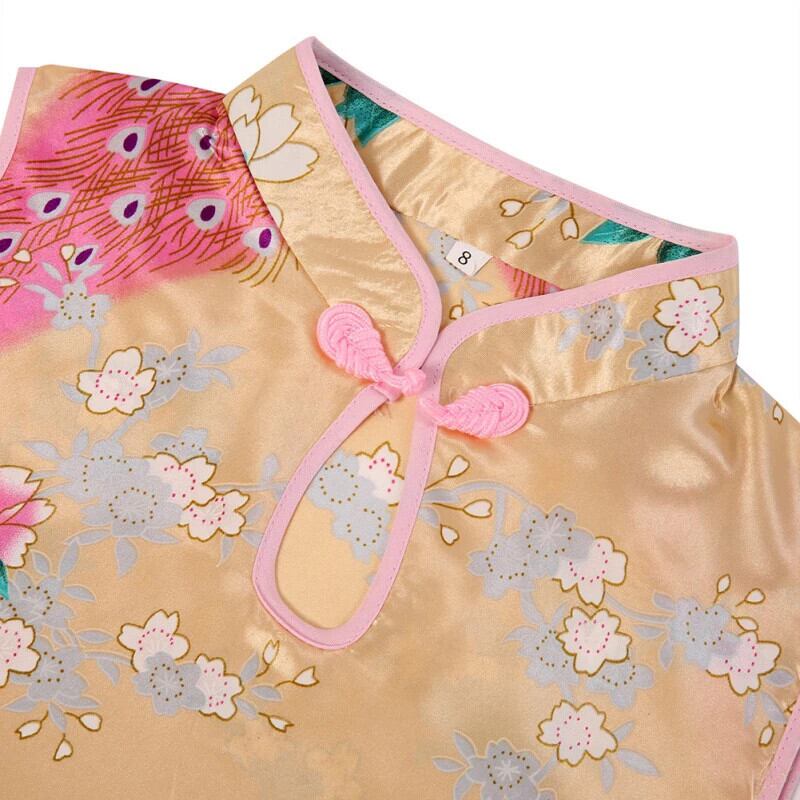 夏キッズガールズドレスノースリーブ孔雀プリントガールドレス子供中国伝統的チャイナドレス女子 サマー 夏物