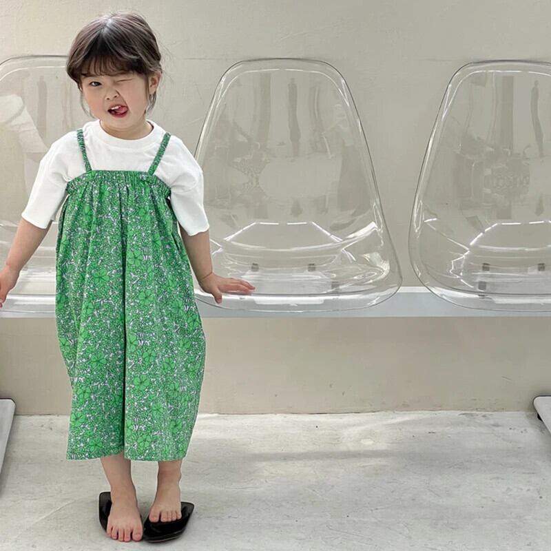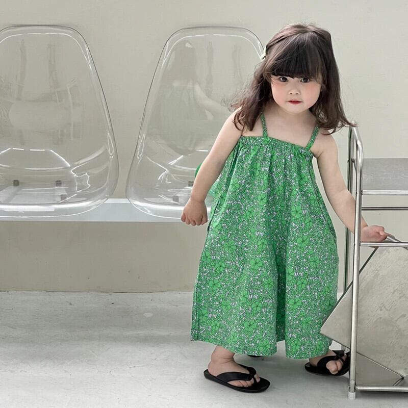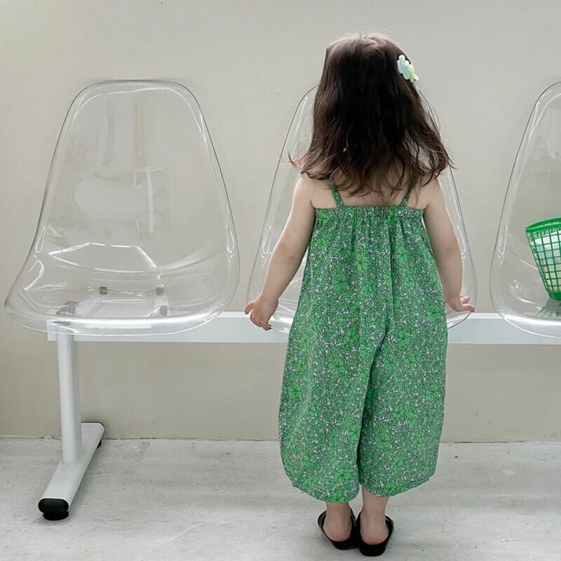 キッズガールズジャンプスーツ夏花柄キャミソールガールベビーワイドレッグジャンプスーツ子供ノースリーブ3-8Y サマー 夏物 ワイドパンツ