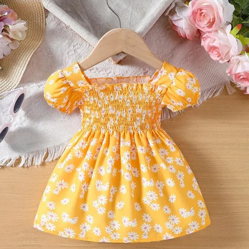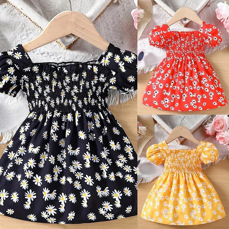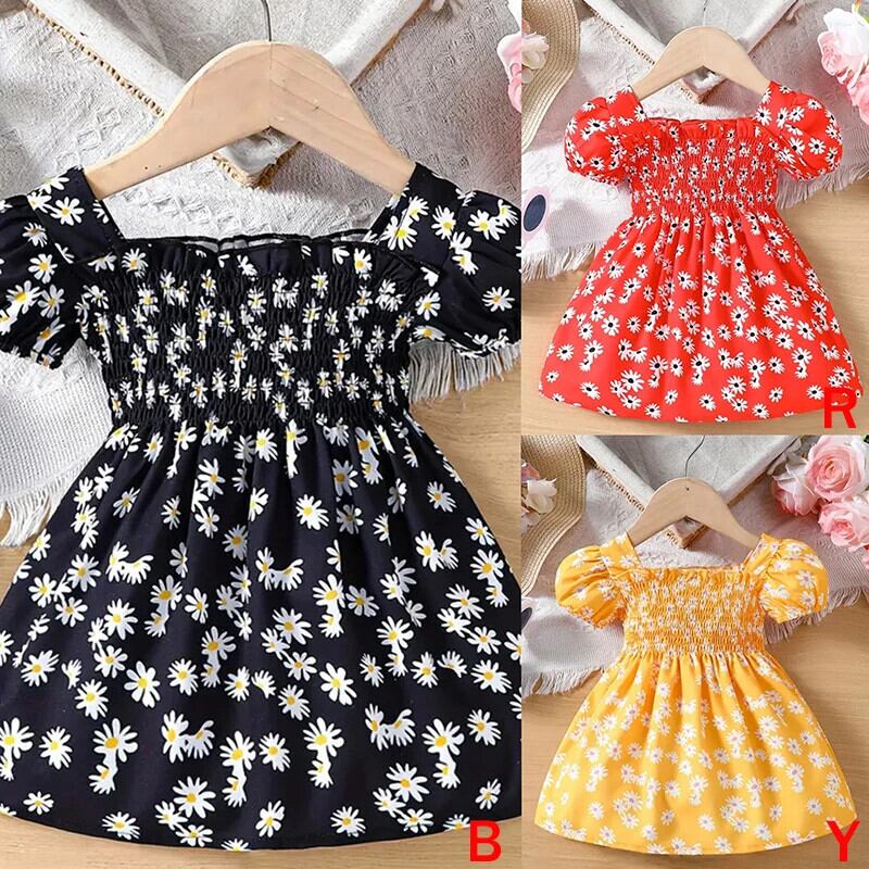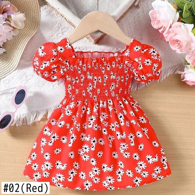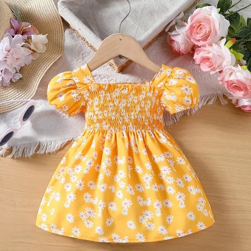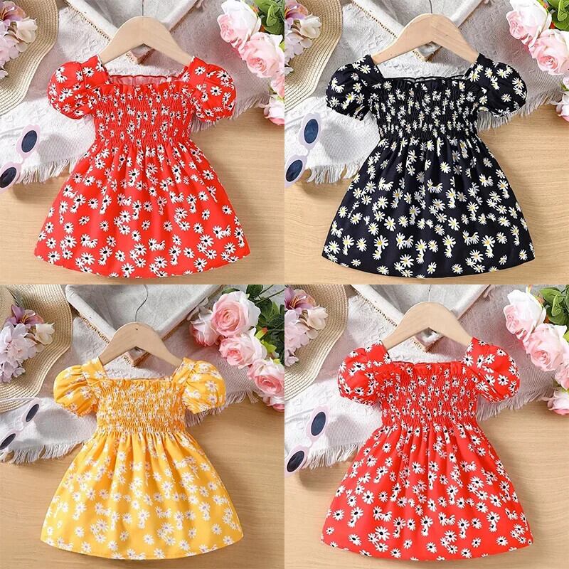 甘い赤ちゃん女子夏パフスリーブデイジーパターンドレス 0-24M 子供誕生日パーティー A ラインドレス幼児女子 大人ガーリー スウィート キュート カジュアル サマー 夏物 キッズ Aライン
