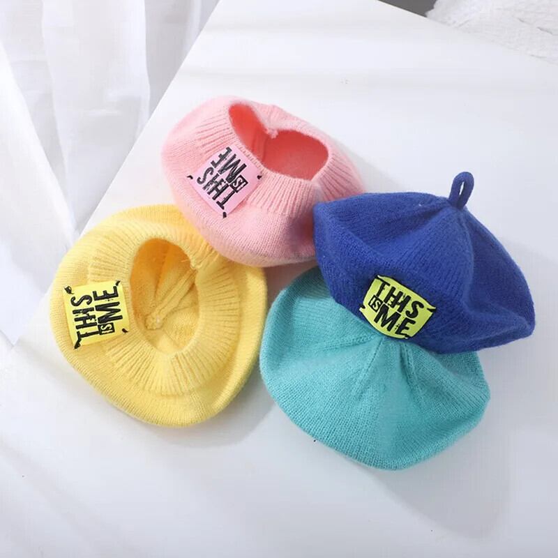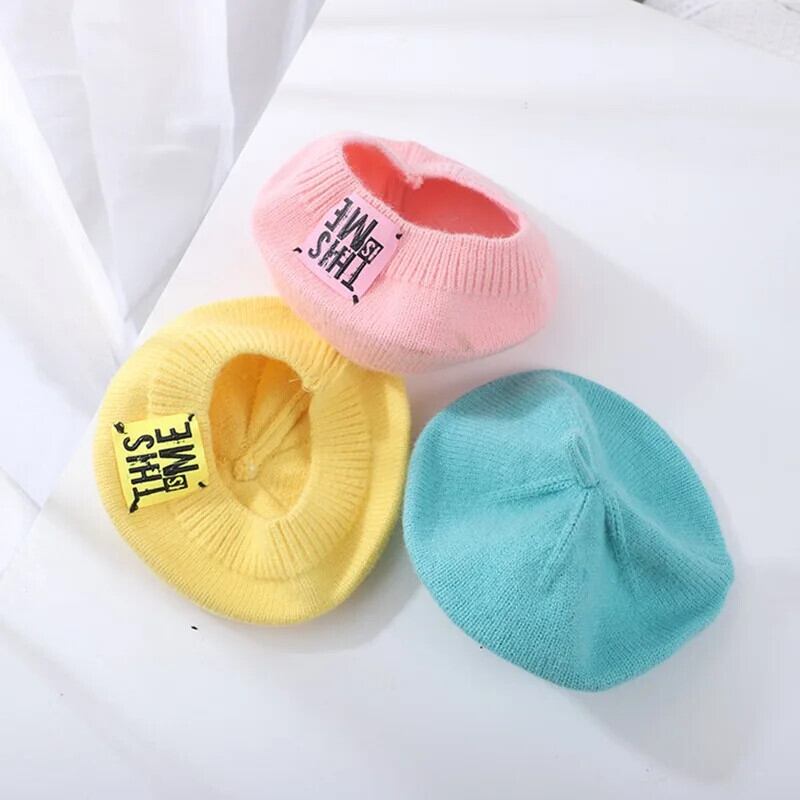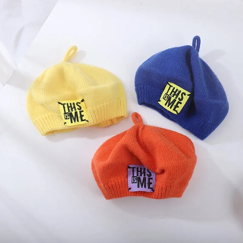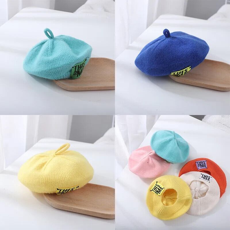 春秋ベビーキッズガールズニットベレー帽フランスアーティスト暖かいウール冬ビーニー帽子レトロ無地ベレー帽無地帽子 スプリング 春物 オータム 秋物 ウィンター 冬物 ベレット ヘアアクセサリー ソリッドカラー