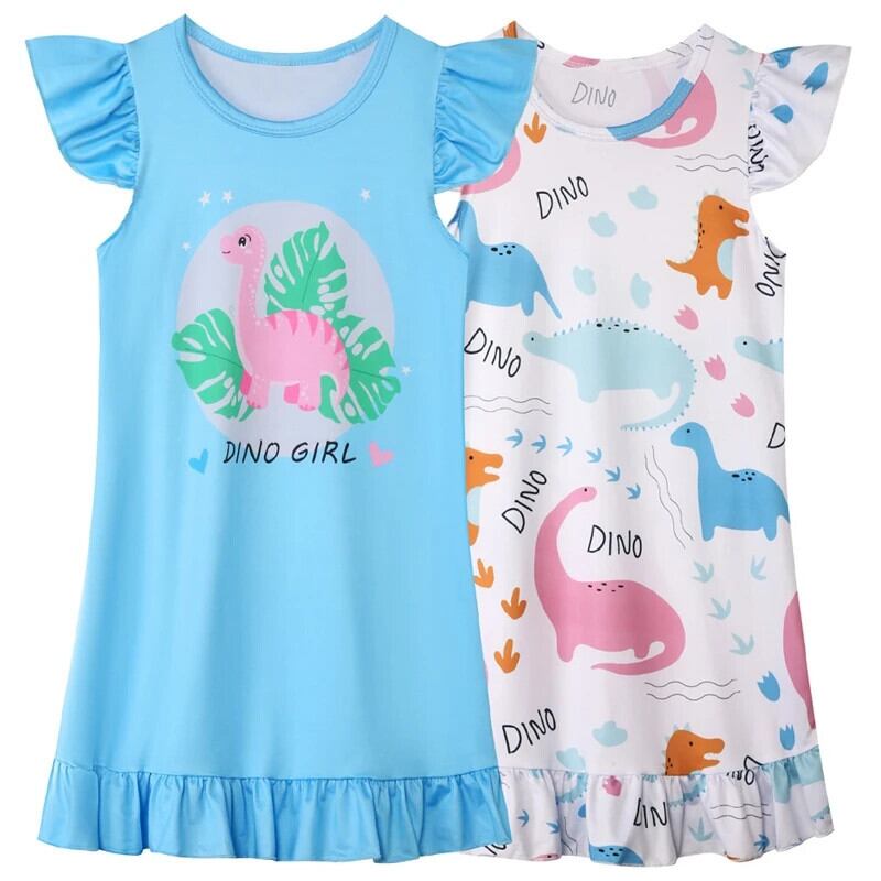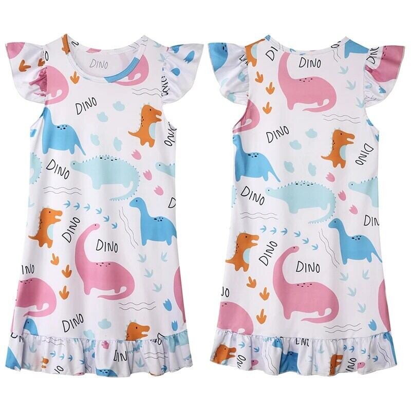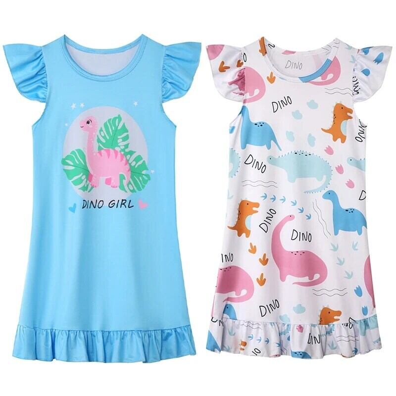 子供ドレス女子恐竜プリント夏半袖ベビー寝間着誕生日幼児キッズガールフロック ショート ハーフスリーブ サマー 夏物