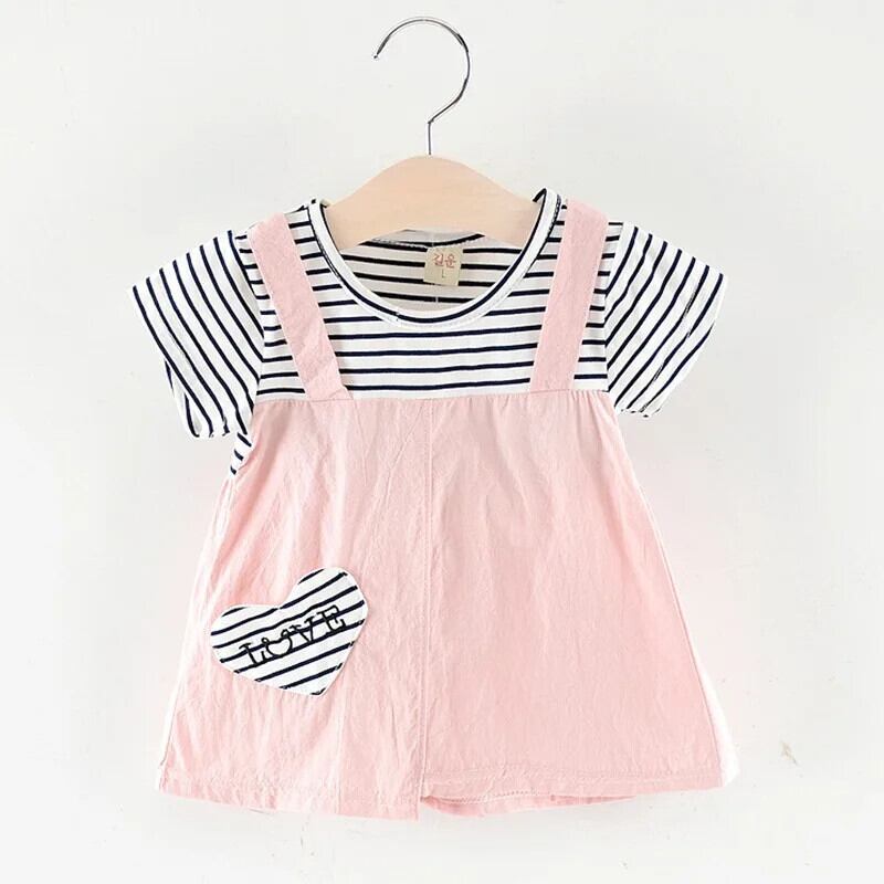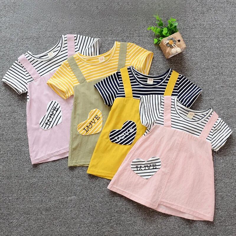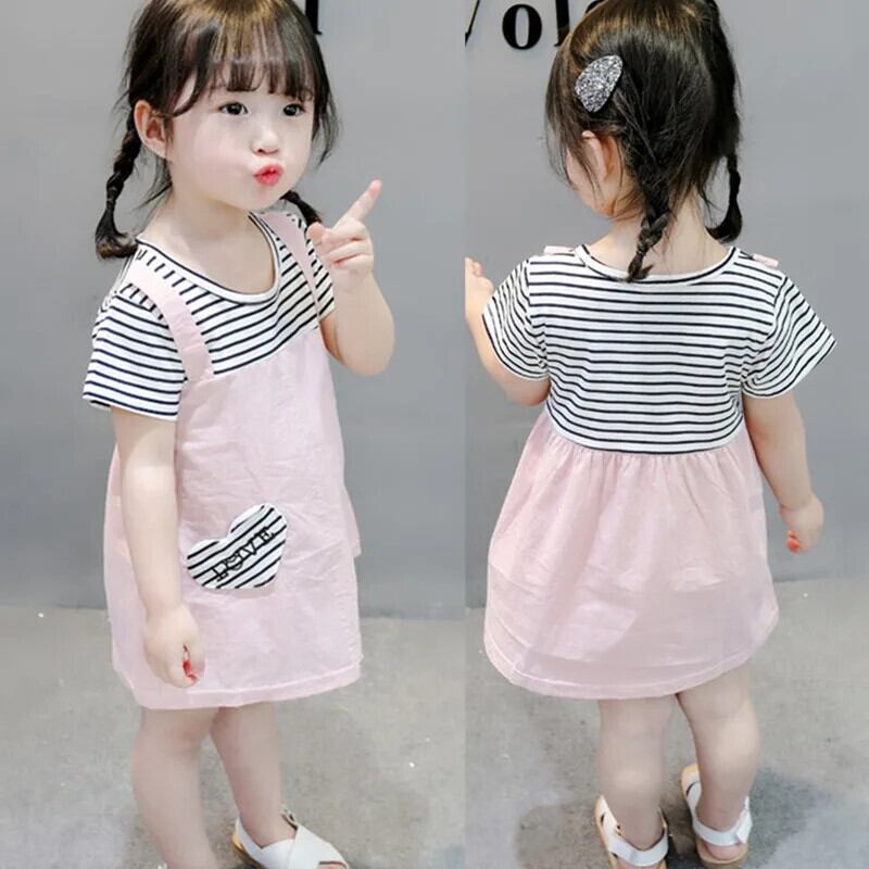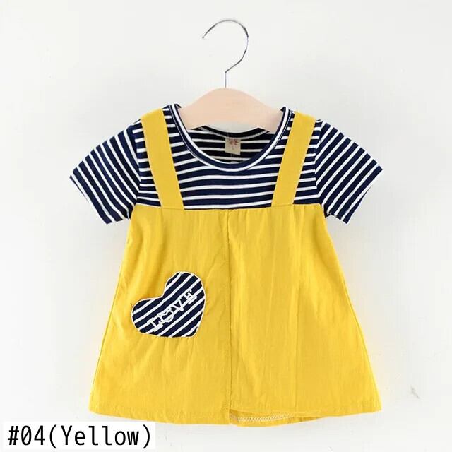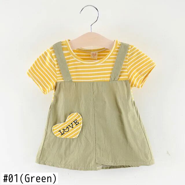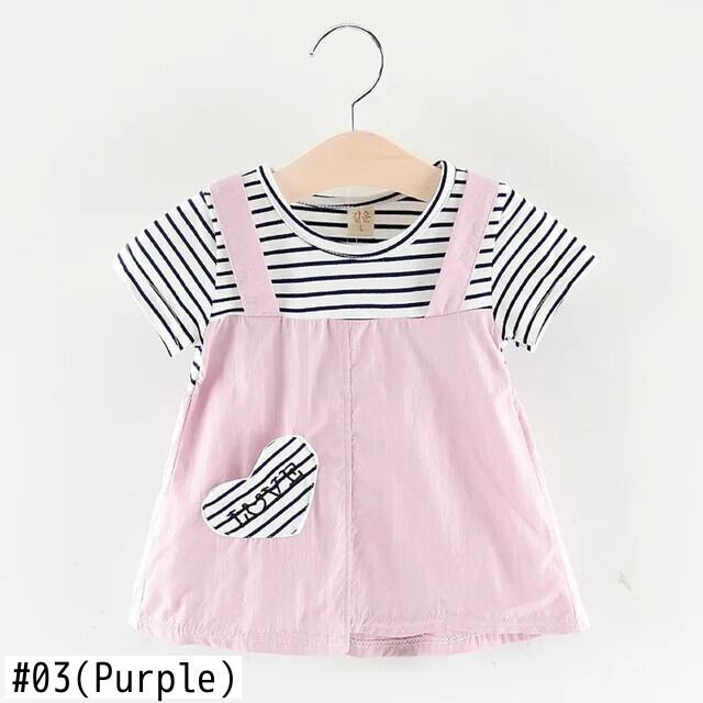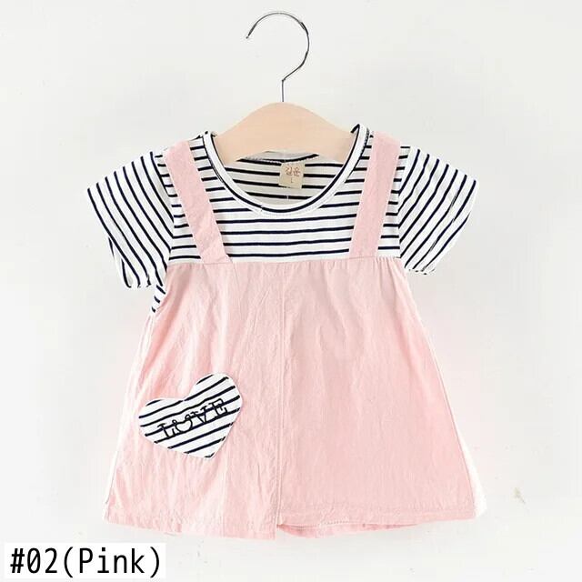 夏女赤ちゃんドレス子供女子子供高級かわいい甘いストライプ偽ツーピース半袖ドレス 大人ガーリー スウィート キュート カジュアル サマー 夏物 キッズ