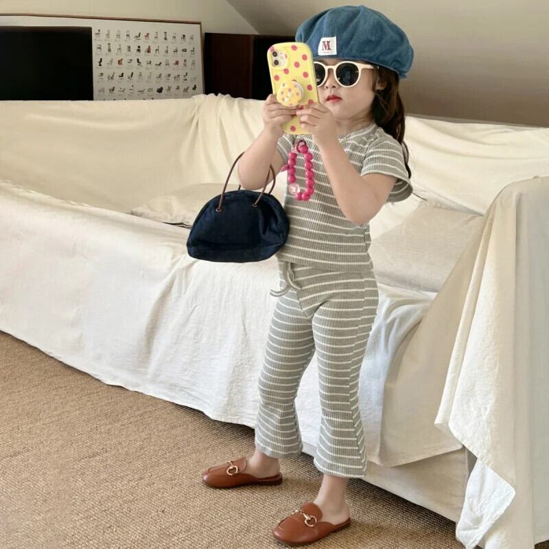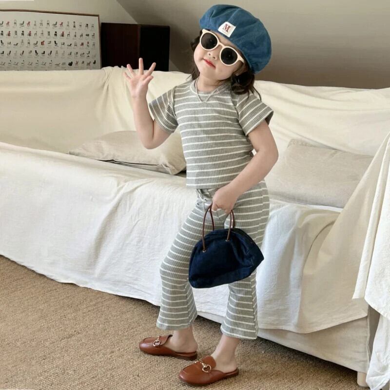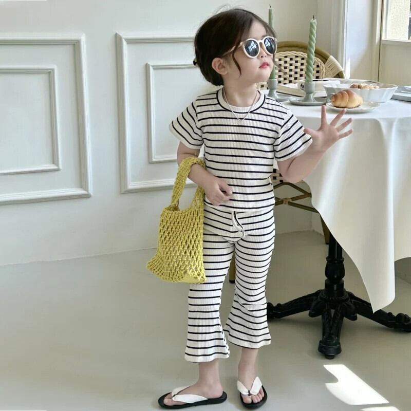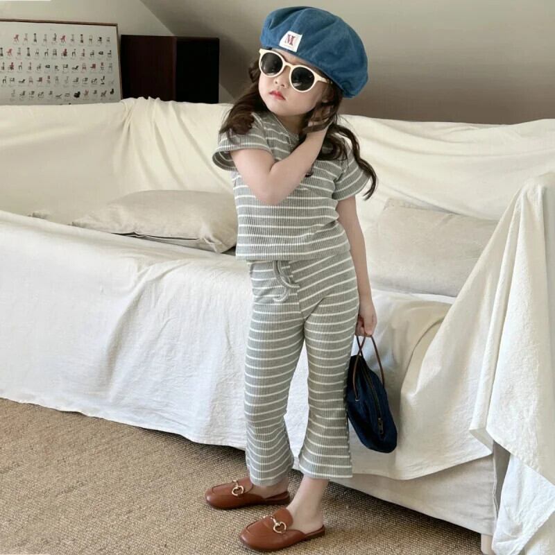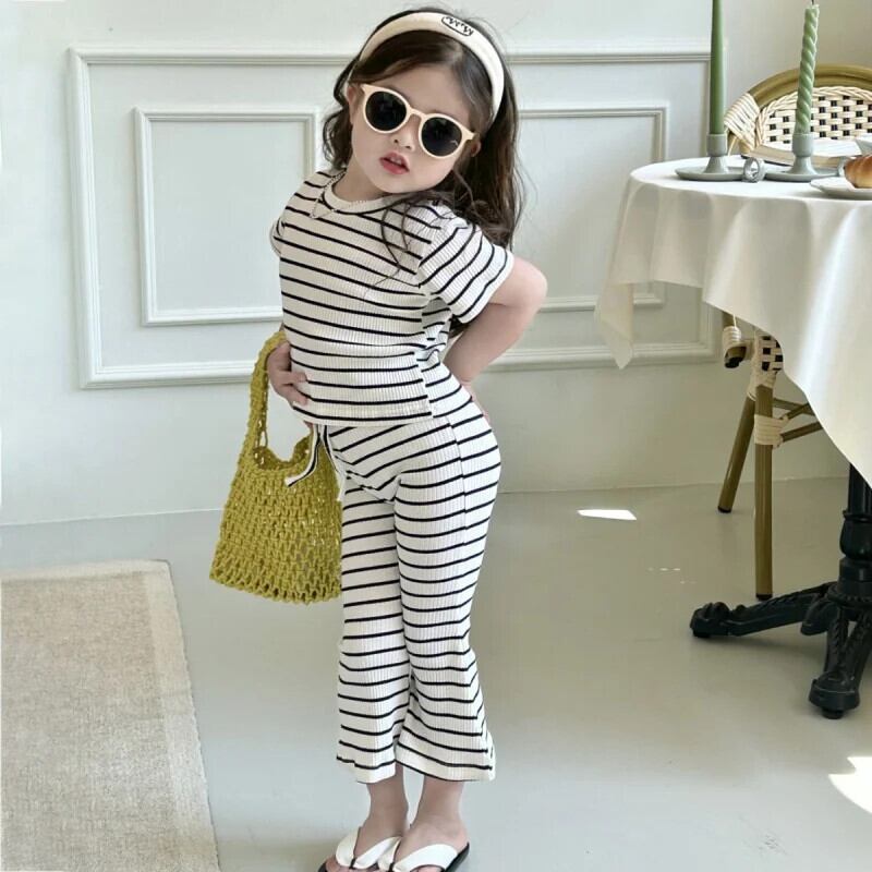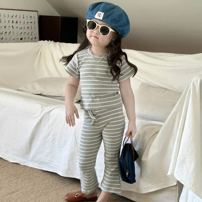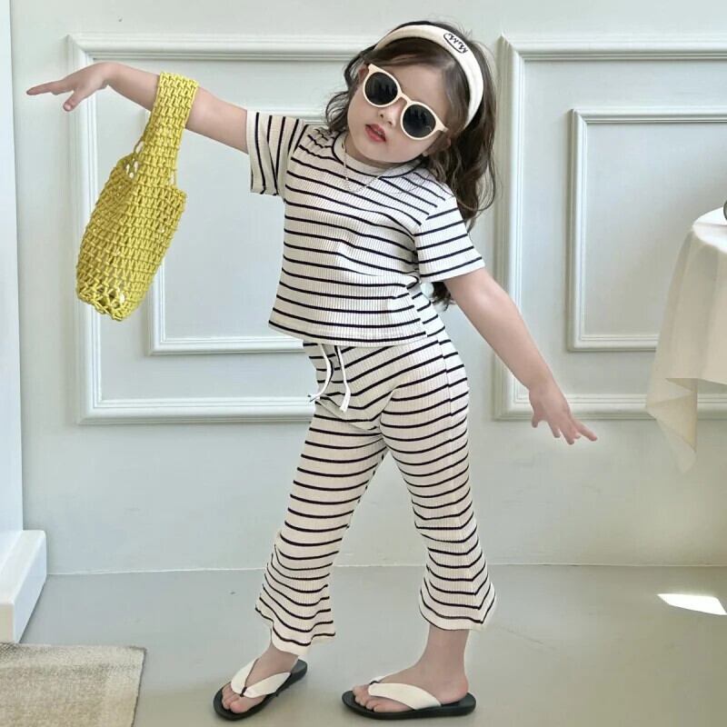 2-8Y 女子セットベビーストライプ半袖パンツスーツ夏子供 Comtable スポーツ 2 個 ショート ハーフスリーブ サマー 夏物
