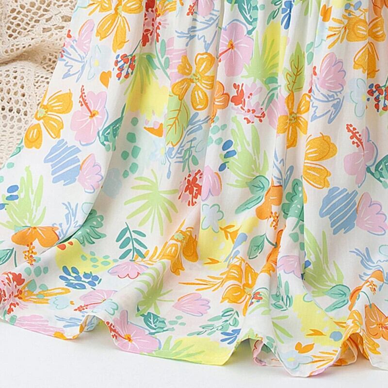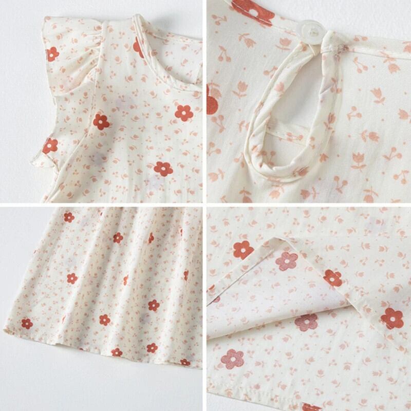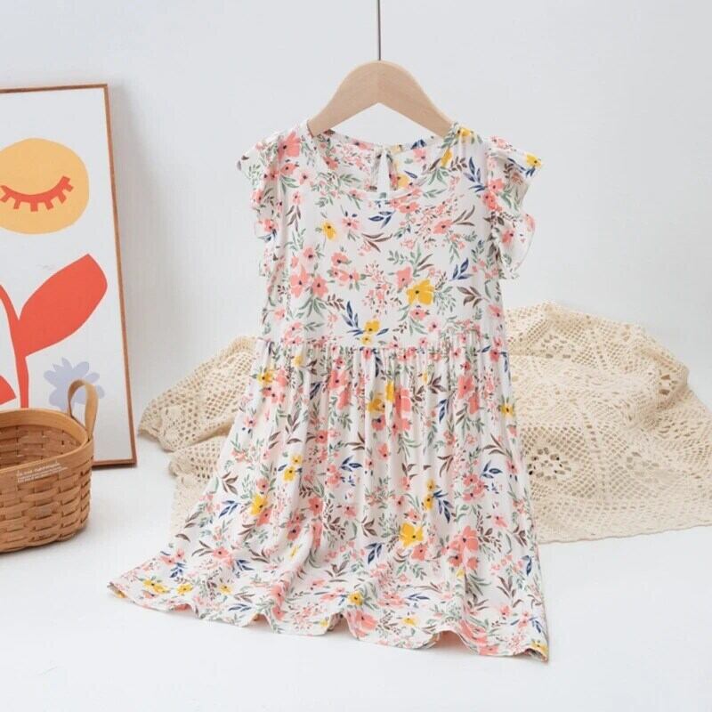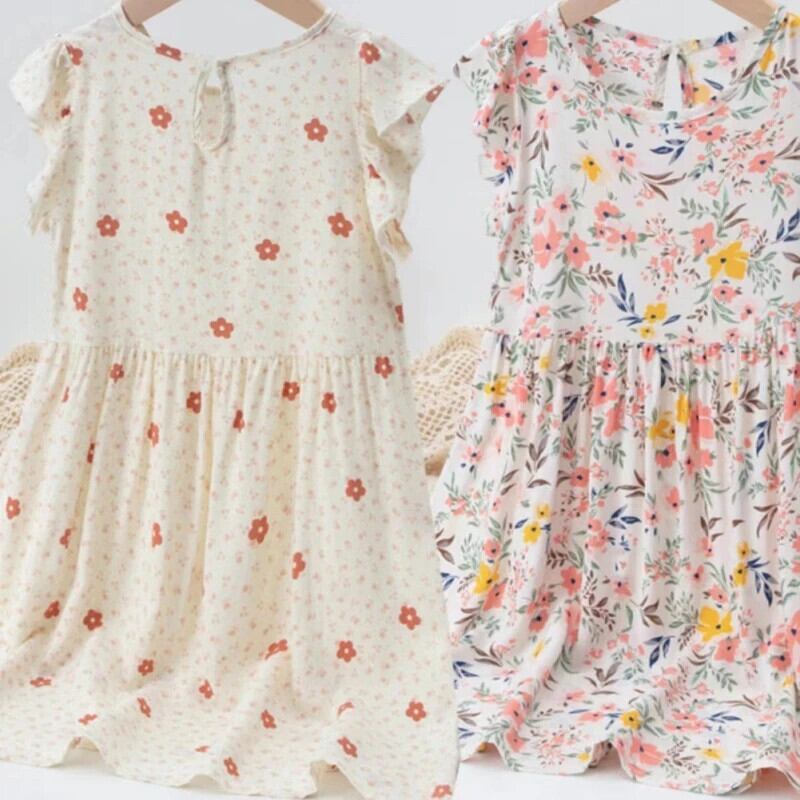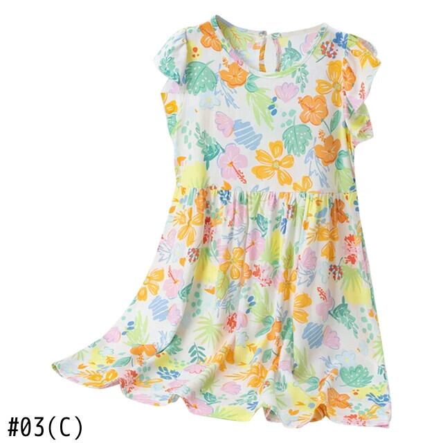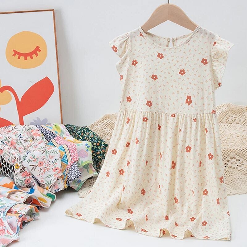 女子コットンドレス夏キッズパーティーガール花柄フライスリーブ衣装子供 Vestidos サマー 夏物
