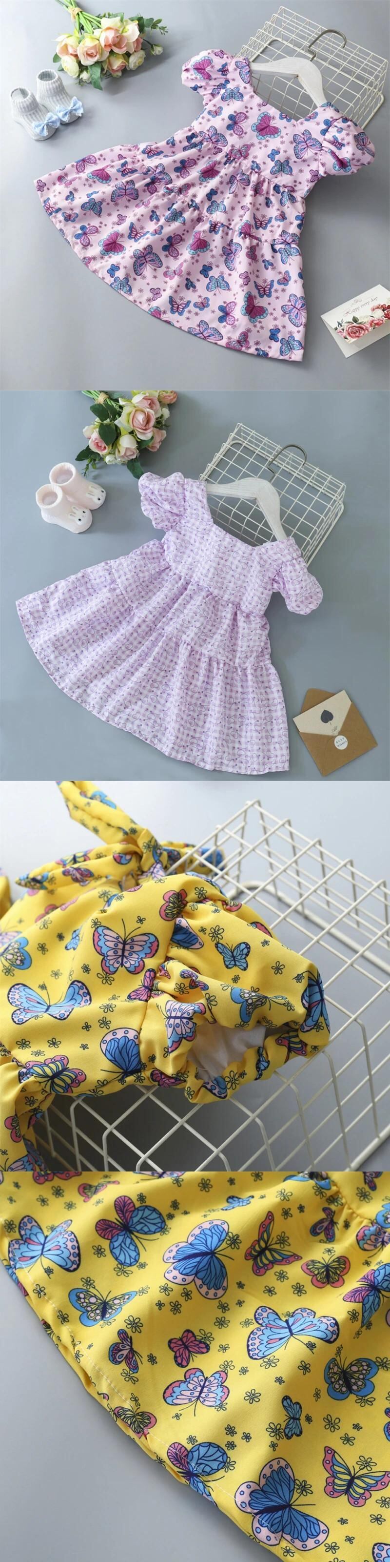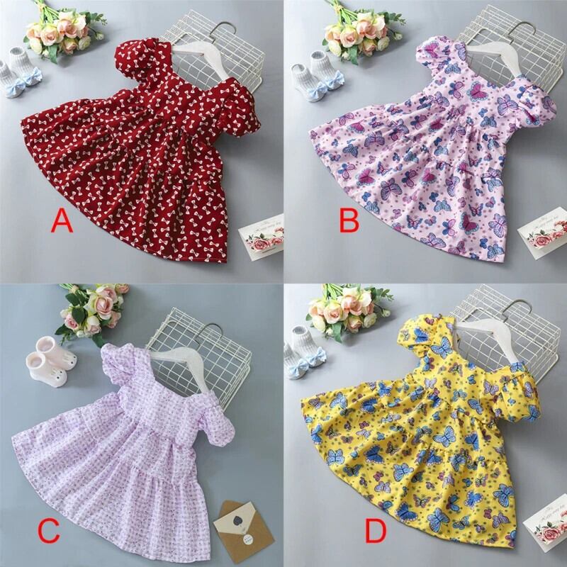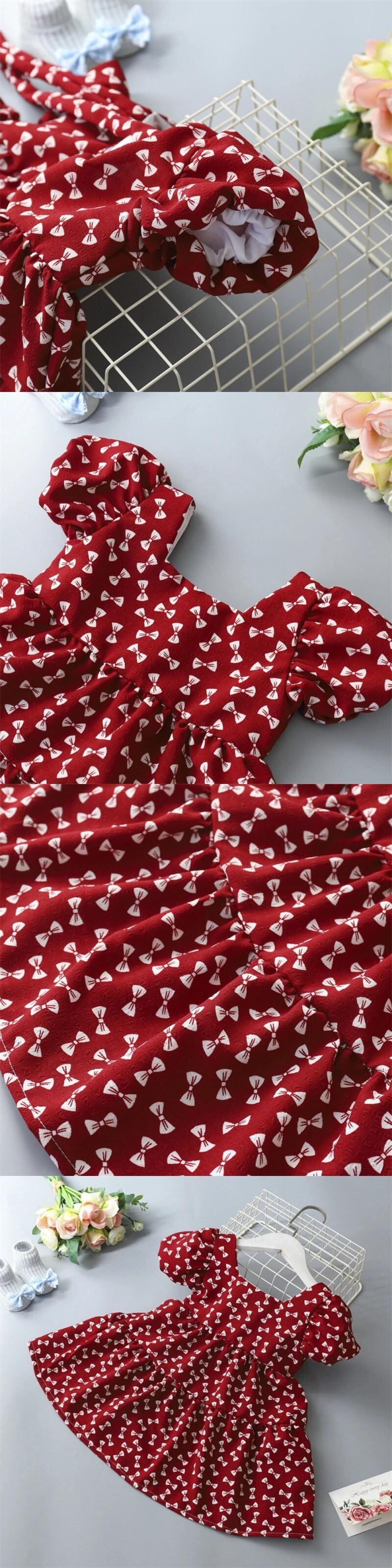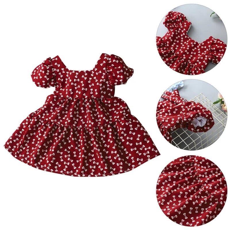 夏キッズ女子ドレスパフスリーブ女赤ちゃんフラワープリントちょう結びドレスガールドレス リボン サマー 夏物 フラワーデザイン