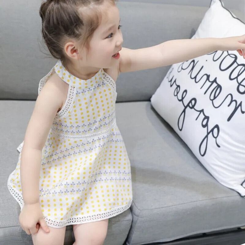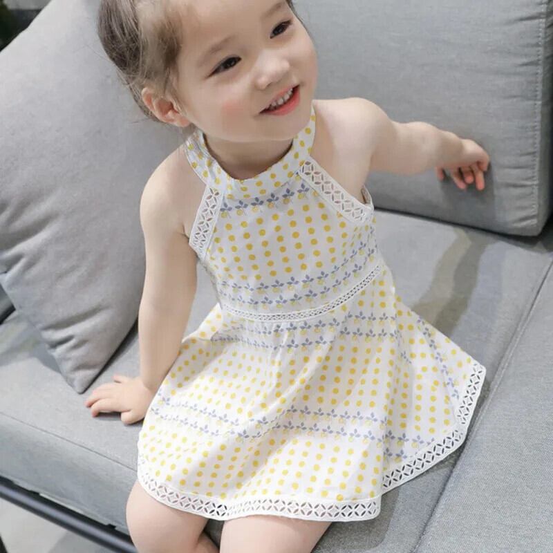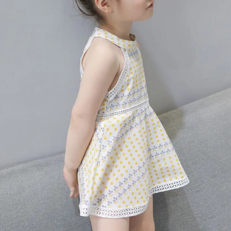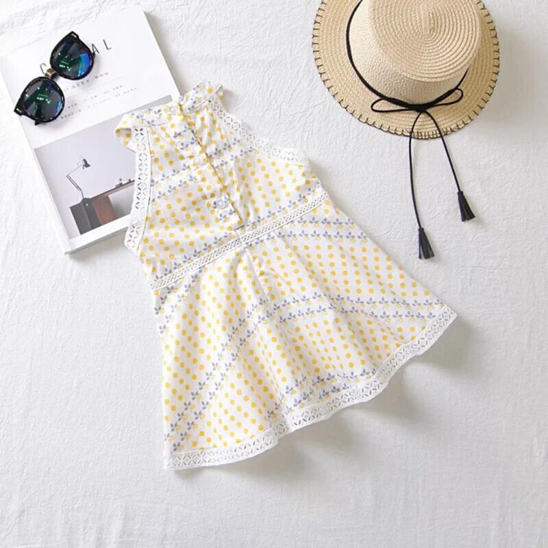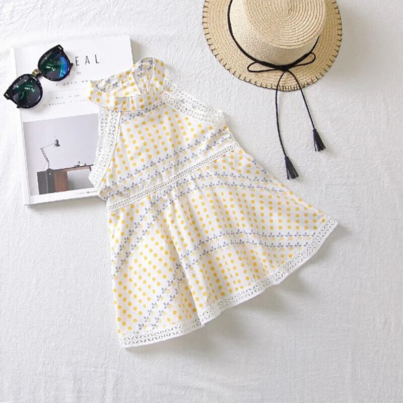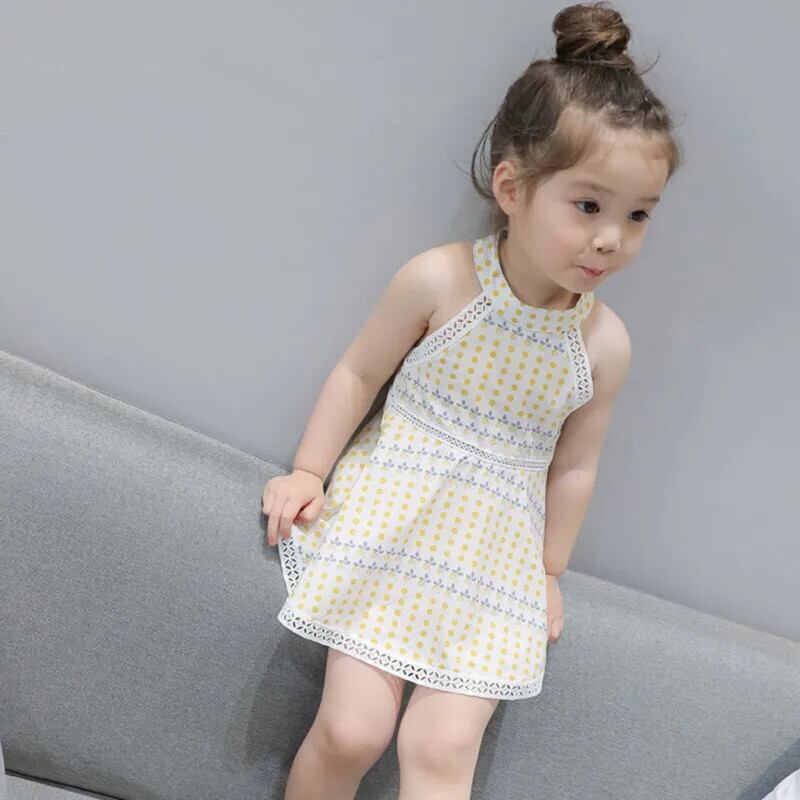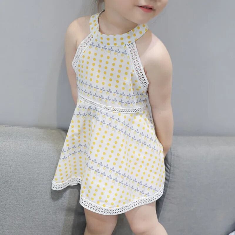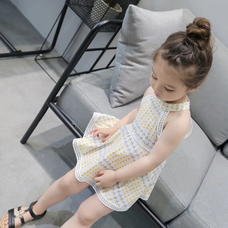 レースドットキッズガールズ Sumdress 夏子供ノースリーブドレスぶら下げネックドレスウェディングパーティー Vestidos 1-6Y サマー 夏物