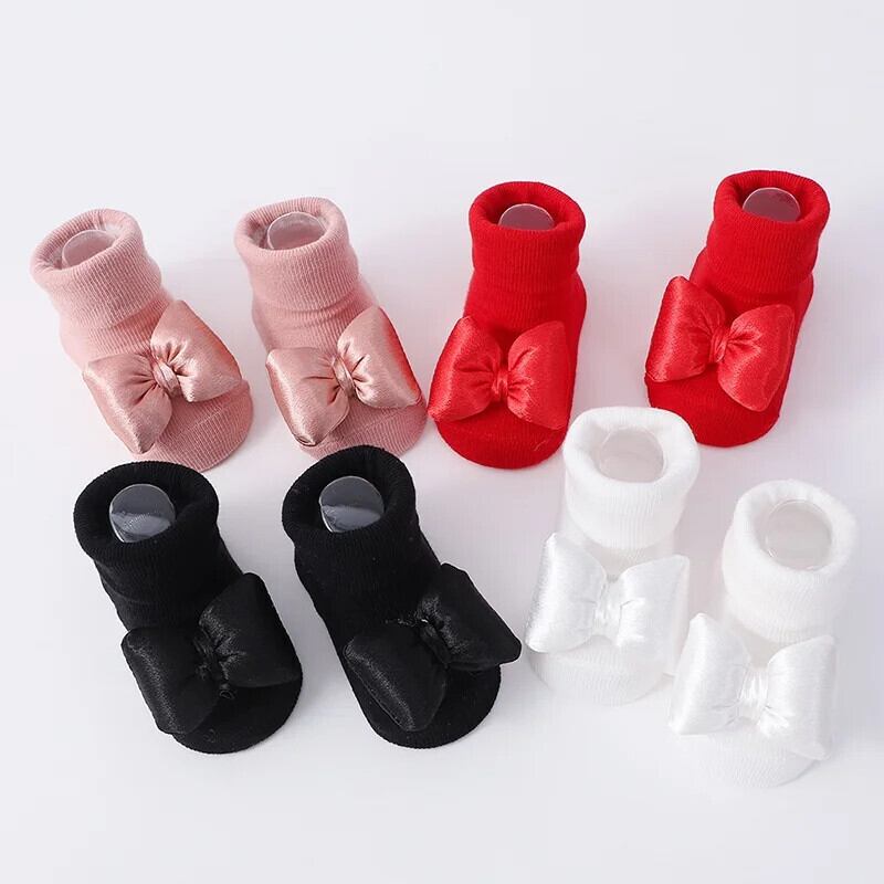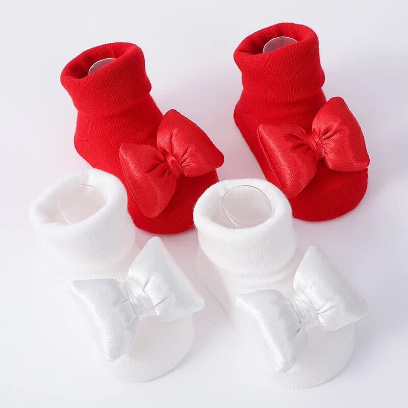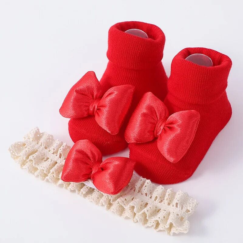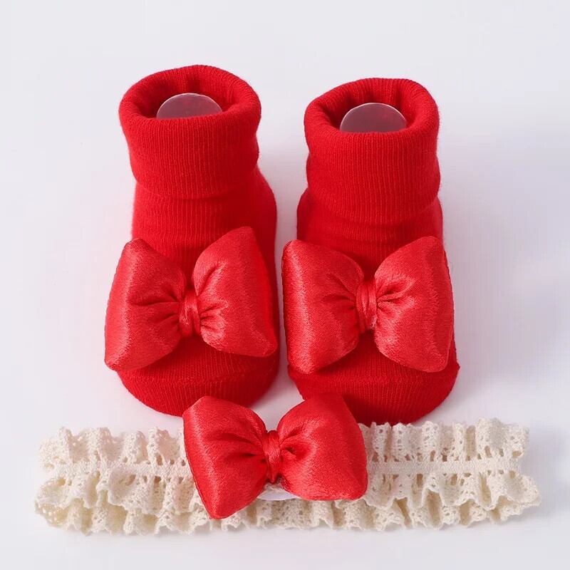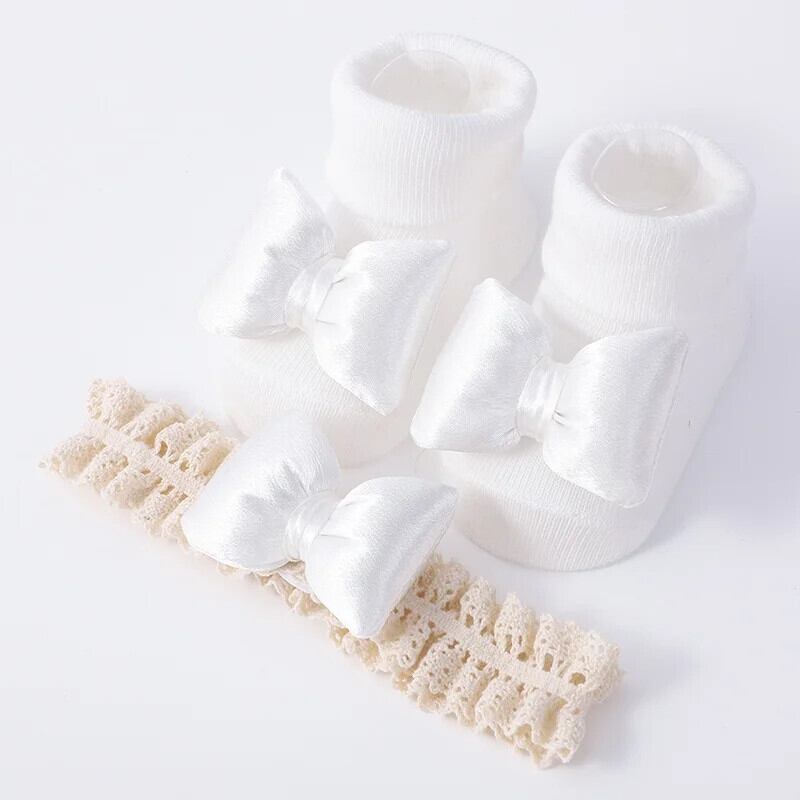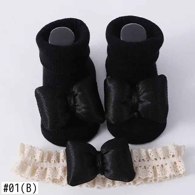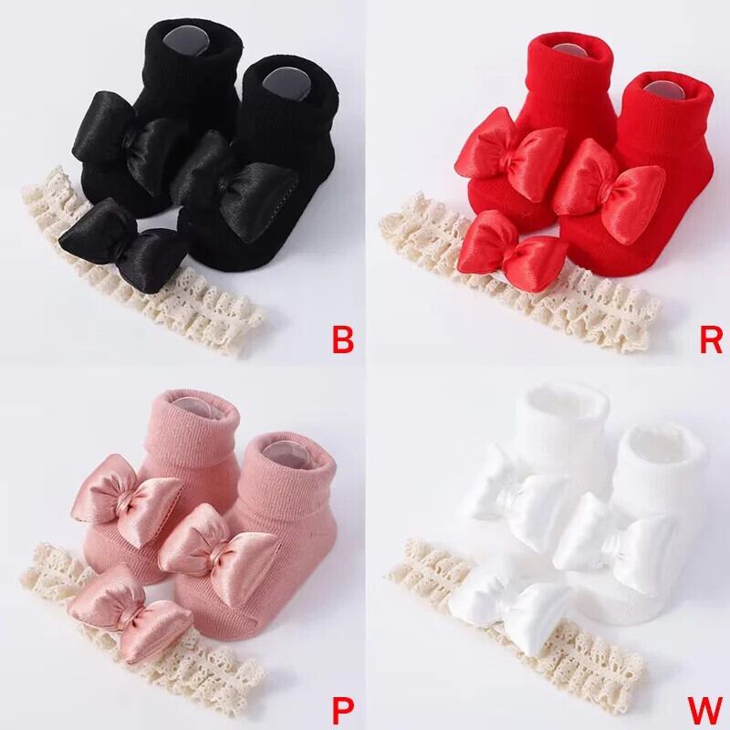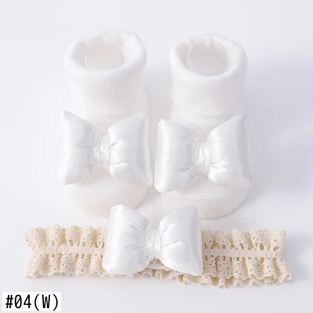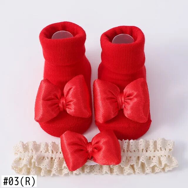 Baywell 弓ベビーヘッドバンド靴下セットノンスリップ綿靴下生まれヘアバンド幼児女子ヘアアクセサリーギフト リボン コットン タイツ ストッキング ソックス