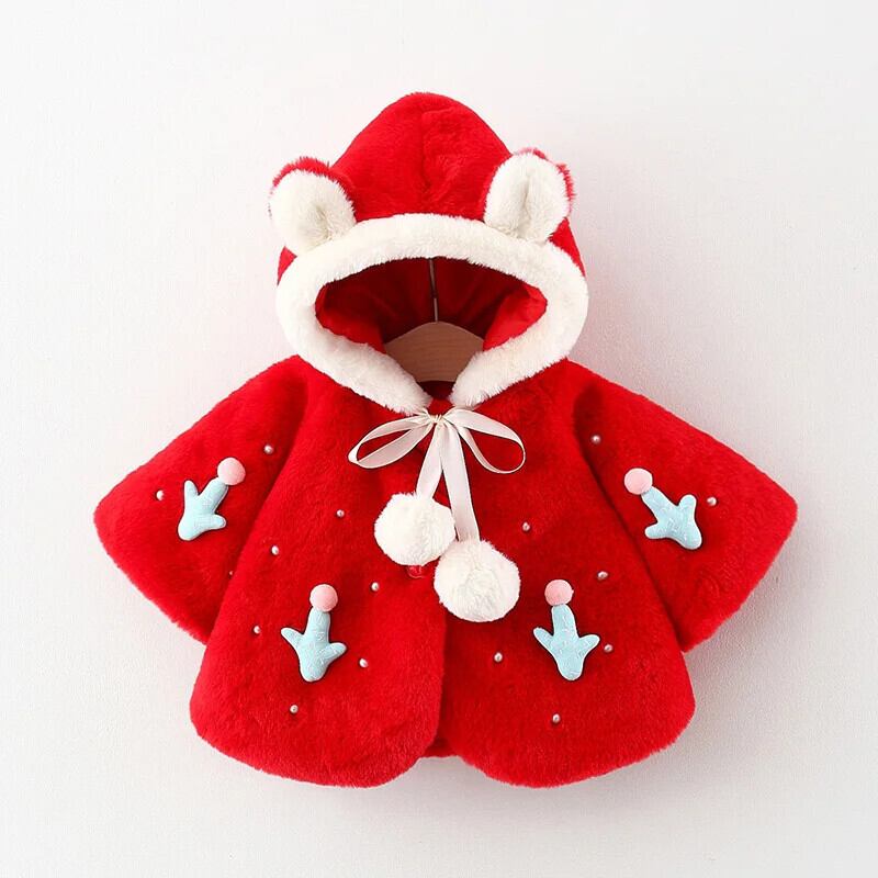 女赤ちゃんマント上着冬暖かい幼児ケープかわいいフード付きマントル模造毛皮幼児子供カーディガンポンチョ 大人ガーリー スウィート キュート カジュアル ウィンター 冬物