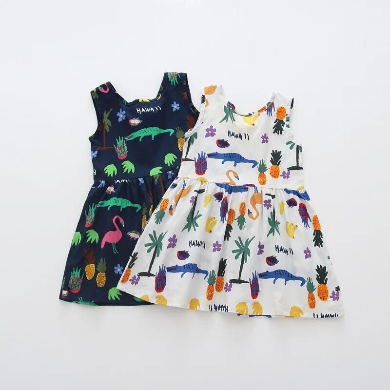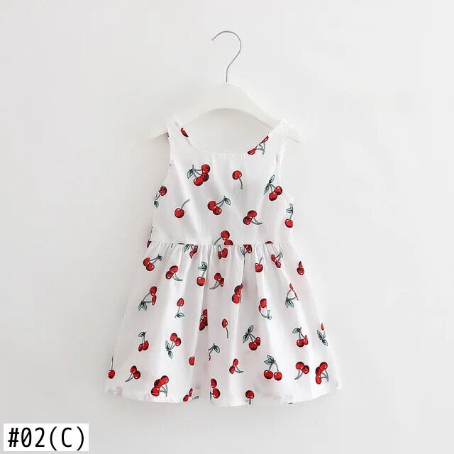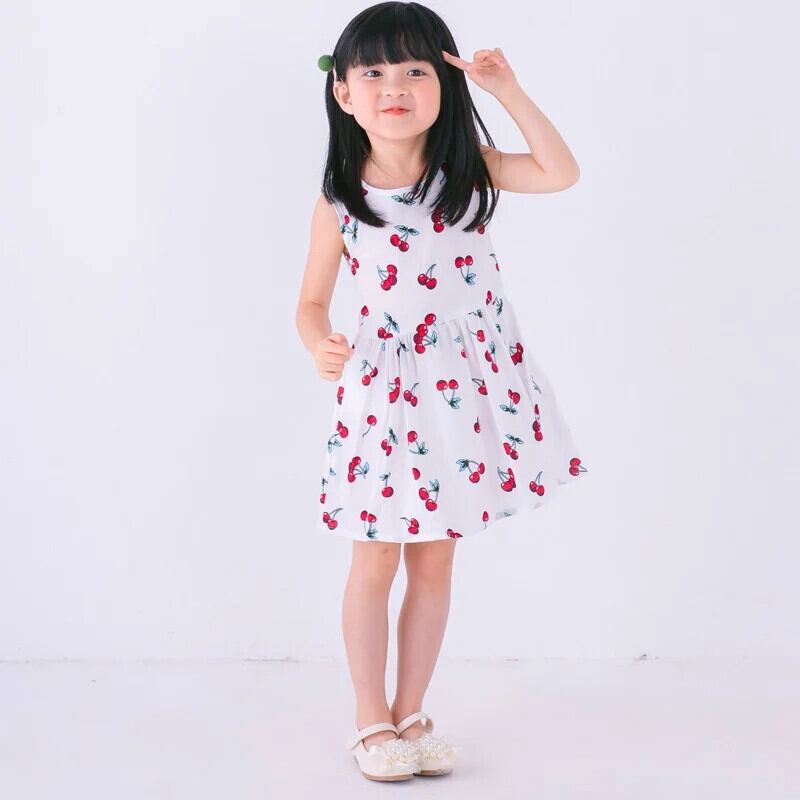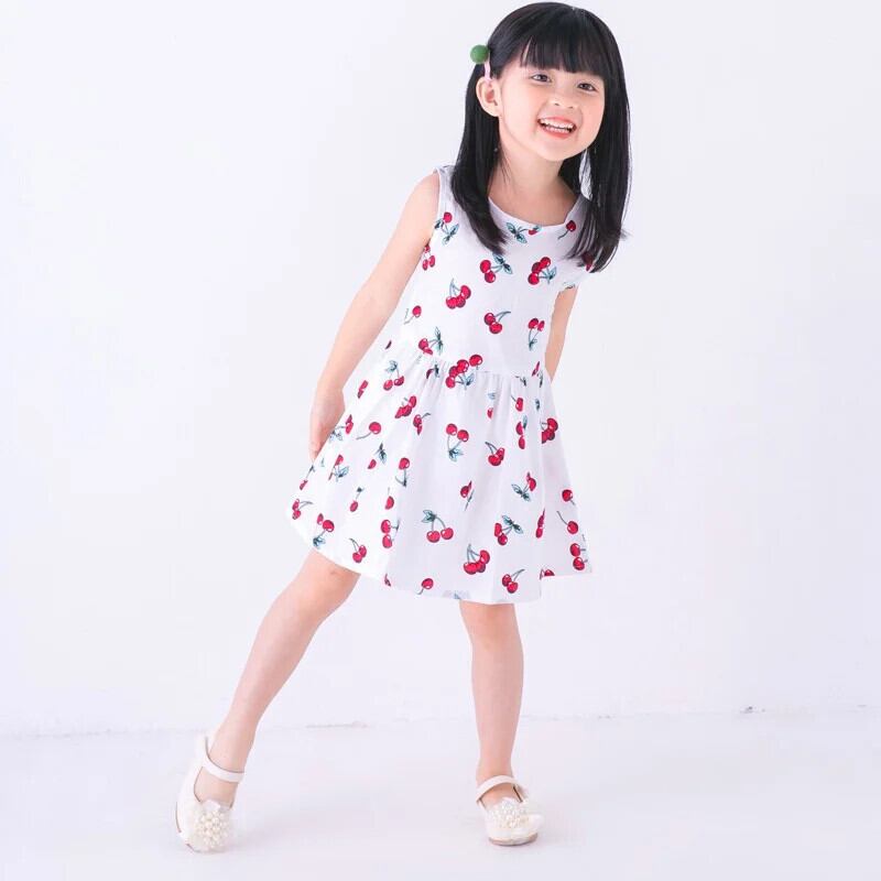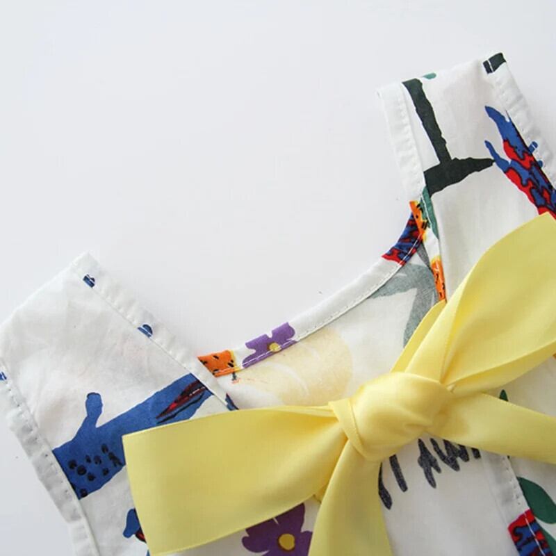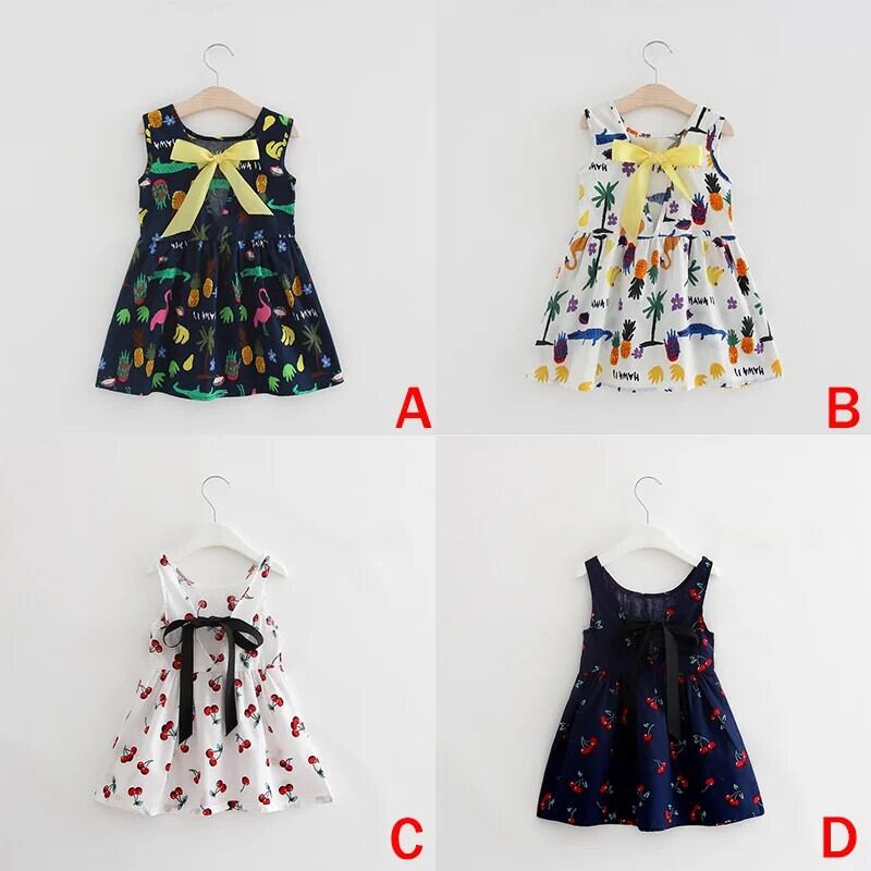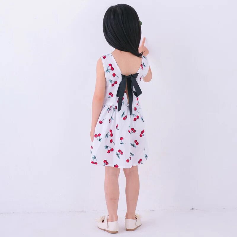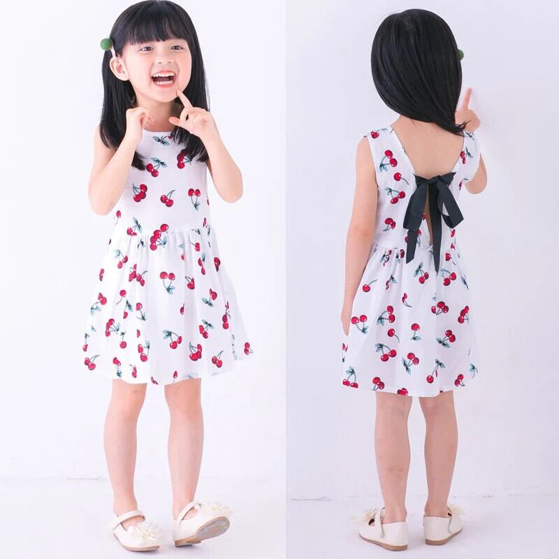 子供女子コットンサマードレスキッズベビーかわいいプリント通気性薄いちょう結びタンクトップスタイルドレス リボン 大人ガーリー スウィート キュート カジュアル 夏物