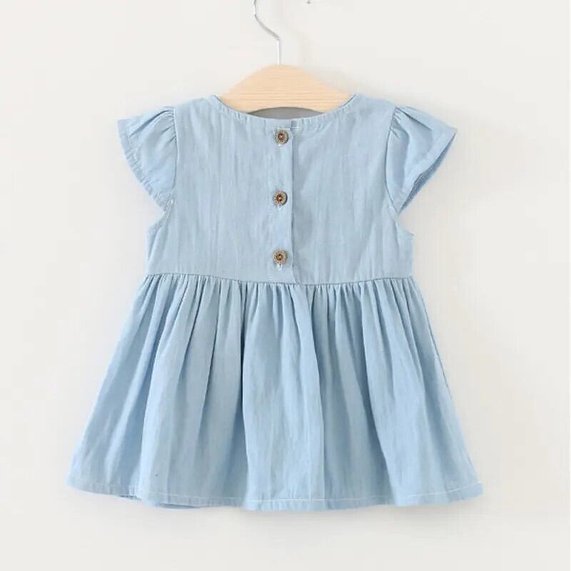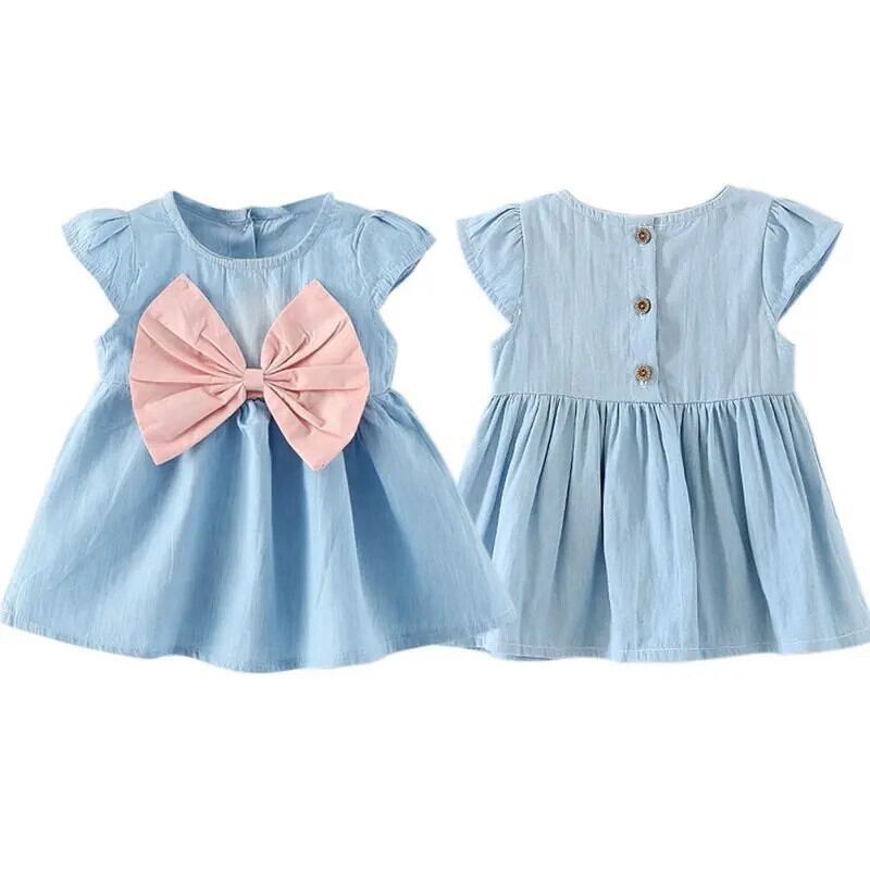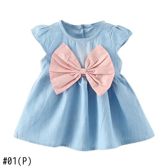 夏女赤ちゃん綿ノースリーブドレス子供女子ドレスベビービッグリボンデニムピュアカラードレス コットン サマー 夏物