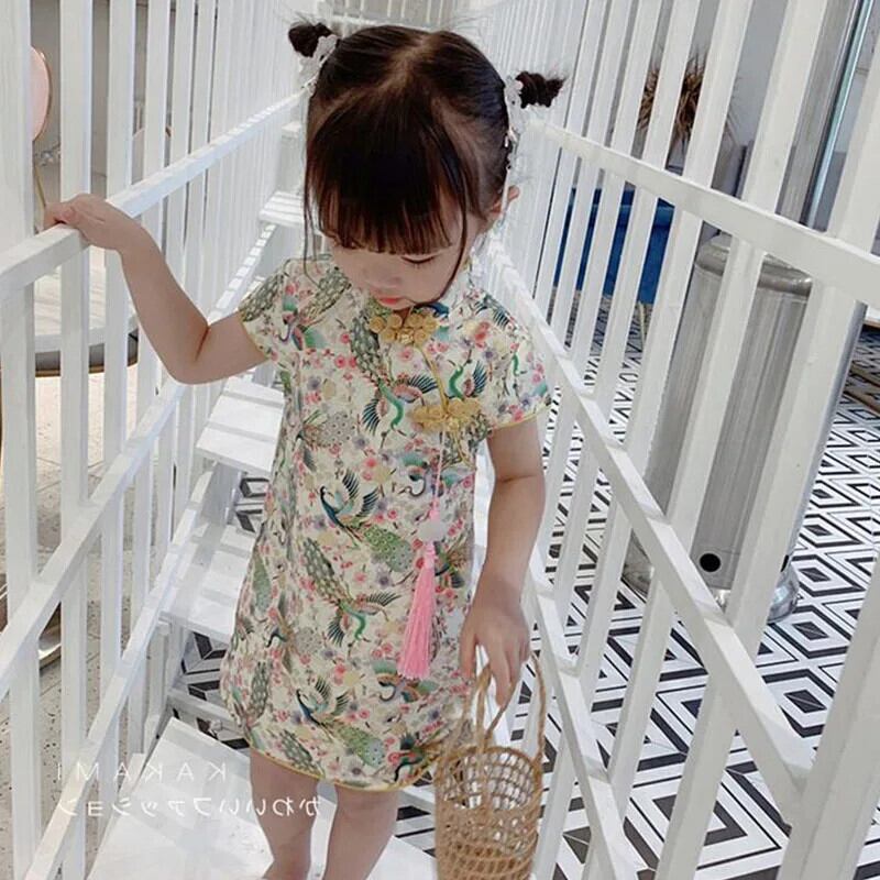 夏キッズガールズドレスかわいい花柄ベビーガールドレス子供中国伝統的チャイナドレス子供女子 大人ガーリー スウィート キュート カジュアル サマー 夏物