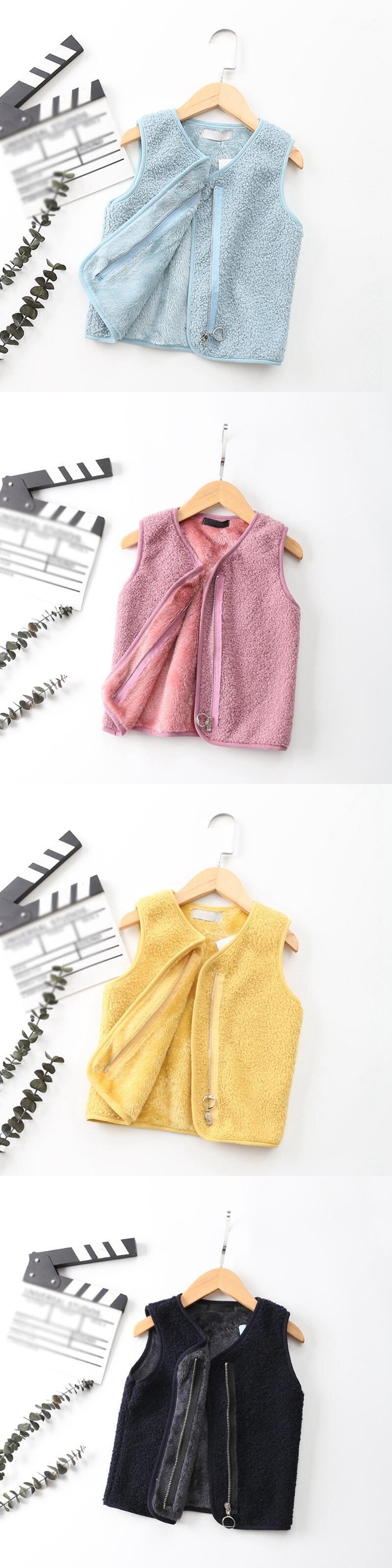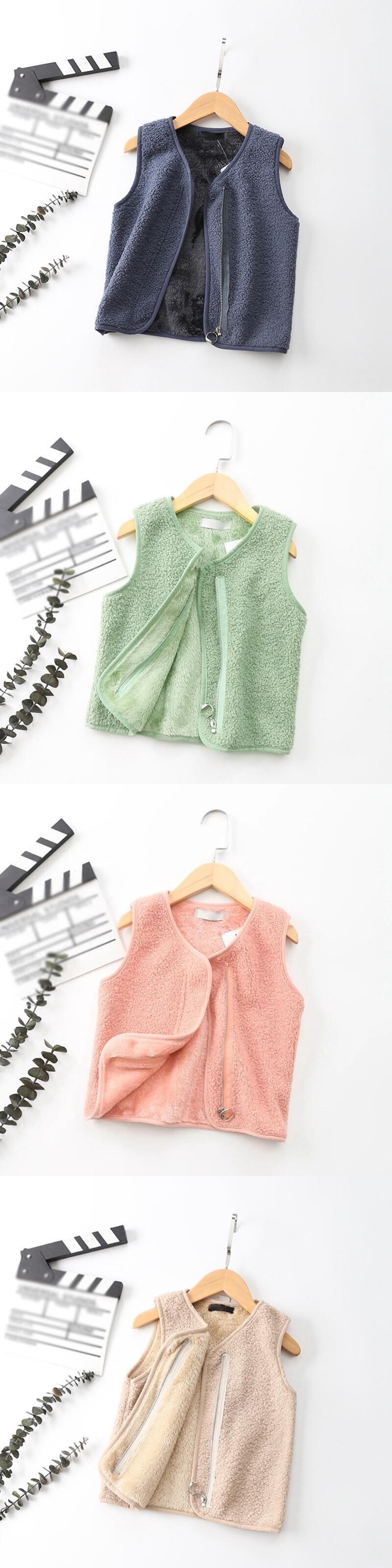 子供ベストポーラーフリース子供上着チョッキノースリーブジッパージャケット子供ベスト少年少女子供暖かいコート キッズ ソリッドカラー