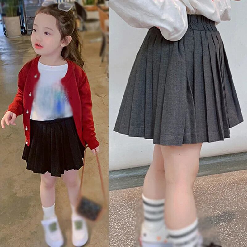 子供女子夏スカート女赤ちゃんミニスカートプリーツスカート弾性ウエストスカート短い学生スカート ショート エラスティック 伸縮 サマー 夏物
