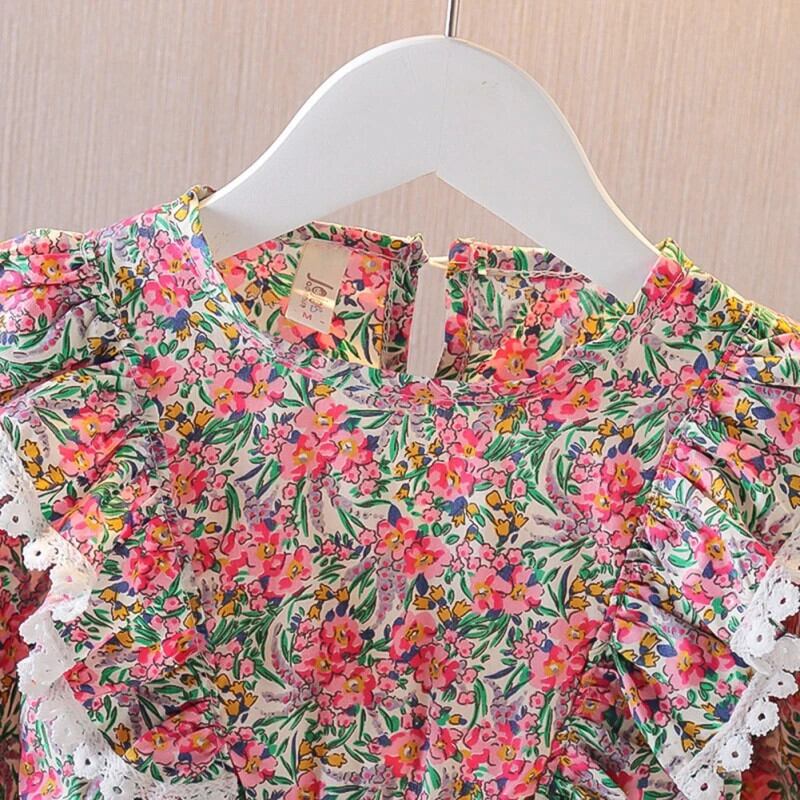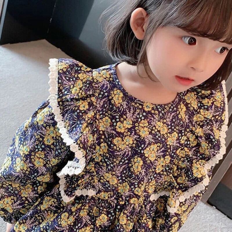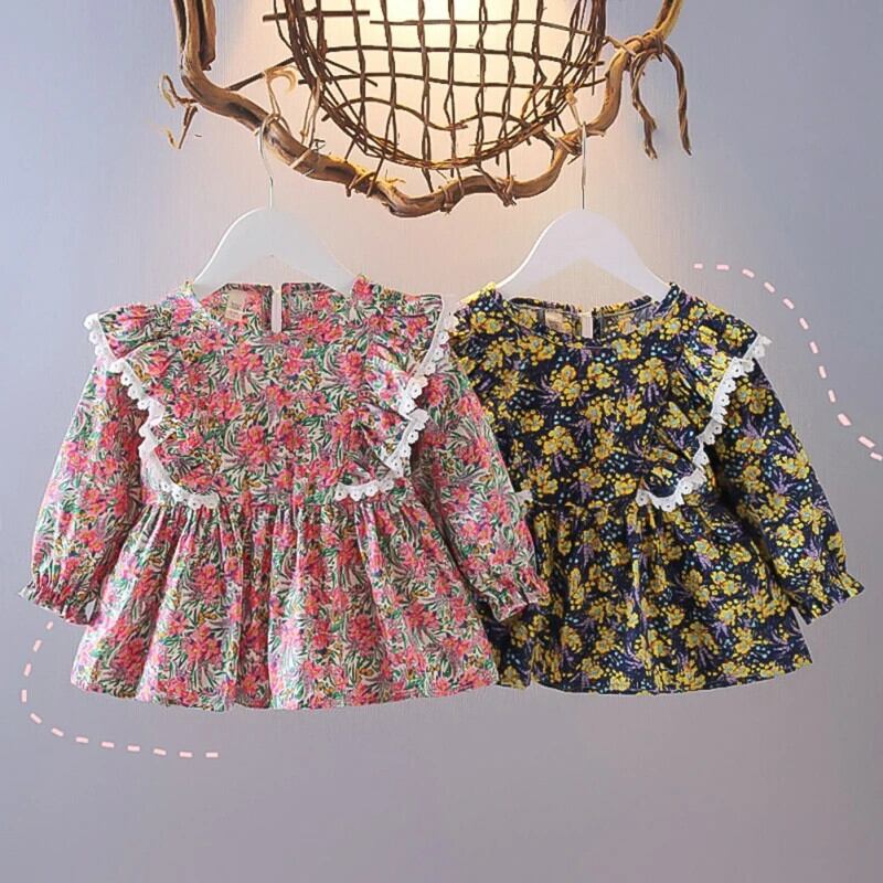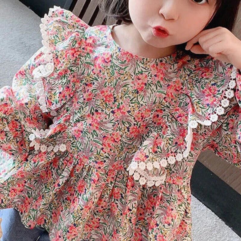 春秋レジャー女子ブラウス綿花長袖トップス幼児女子かわいいシャツ ロング コットン 大人ガーリー スウィート キュート カジュアル スプリング 春物 オータム 秋物 花柄