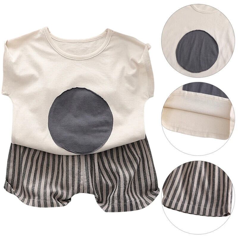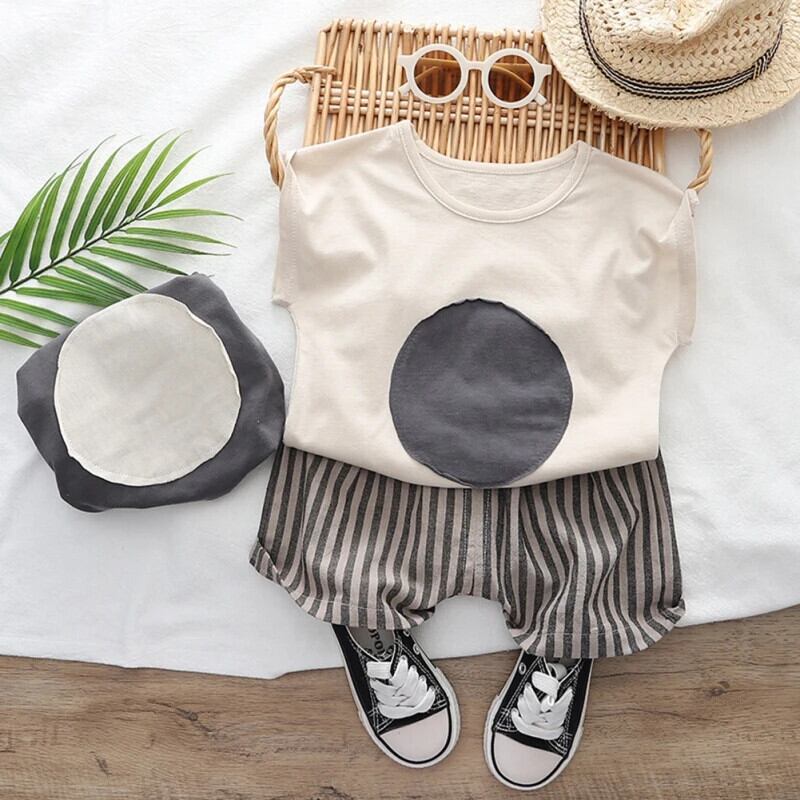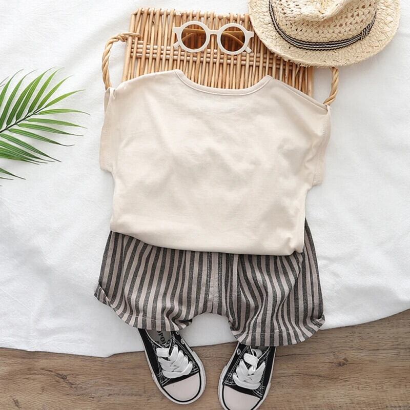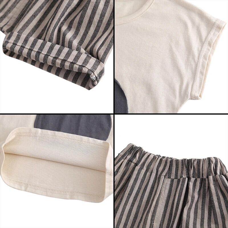 夏キッズボーイズセットノースリーブベストトップ + ストライプショーツパンツスーツ幼児男子綿セット コットン サマー 夏物 ブルマー