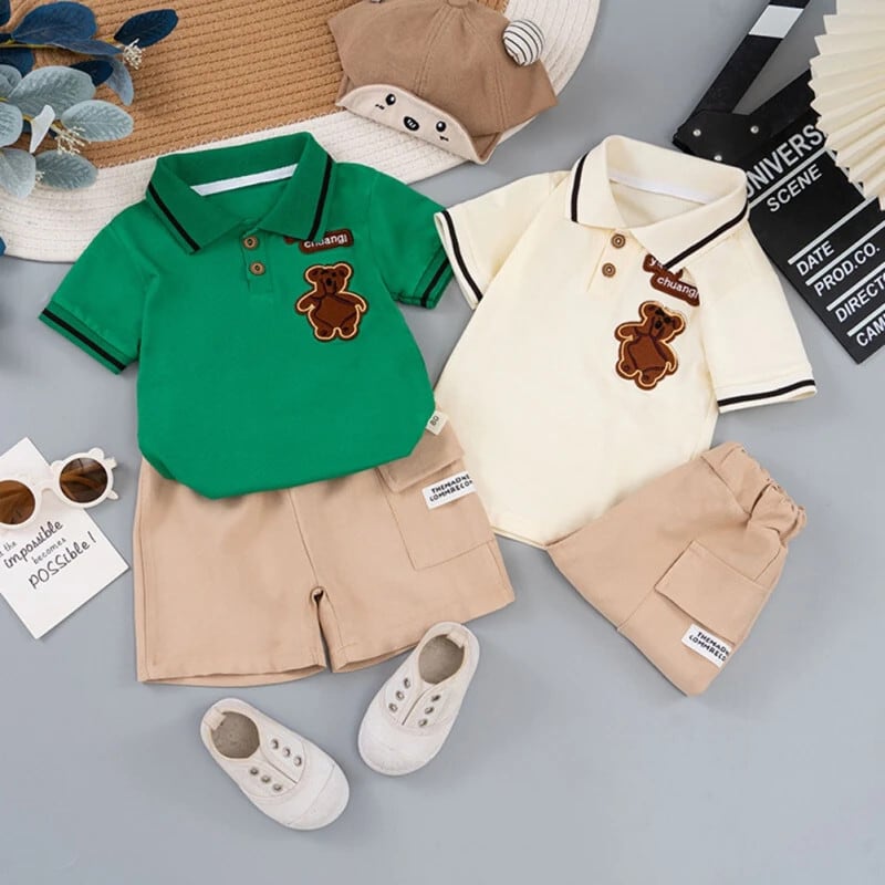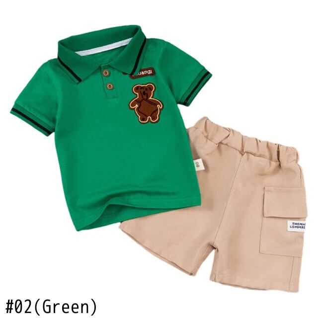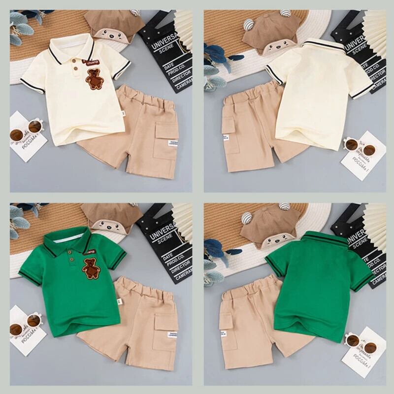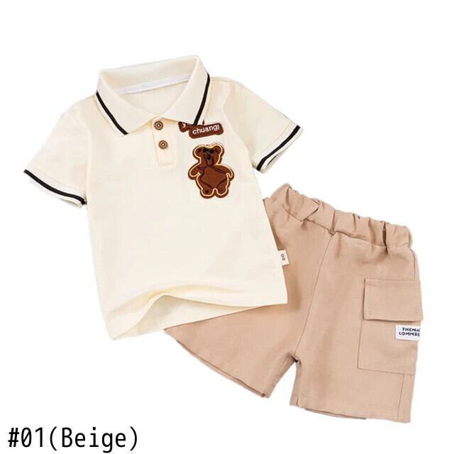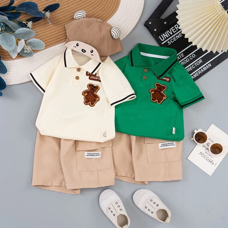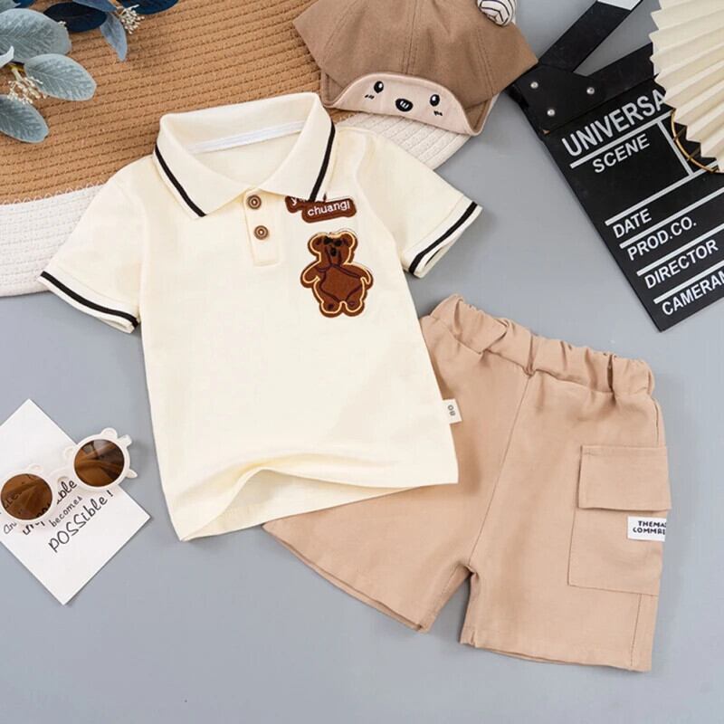 夏子供男子セット漫画刺繍ラペルネック半袖シャツショーツセット幼児男子スーツ ショート ハーフスリーブ サマー 夏物 ブルマー