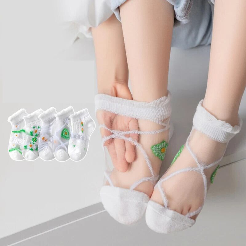 5 ペア/ロット女子靴下夏通気性子供ショートアンクルソックス子供ソフトコットンメッシュ靴下 3-12 年 サマー 夏物 キッズ タイツ ストッキング