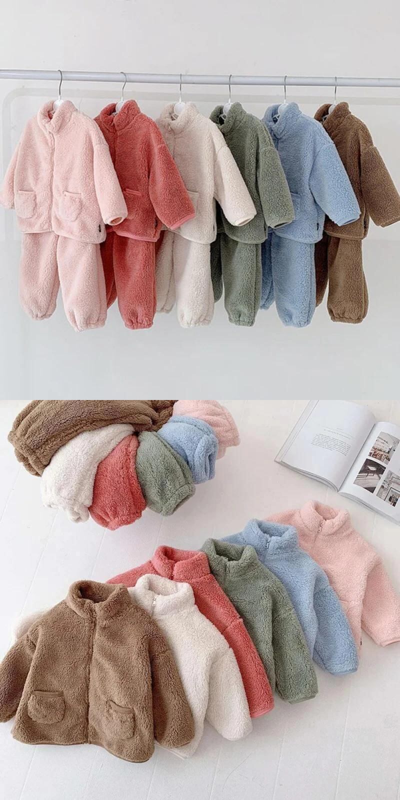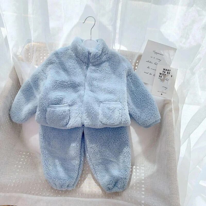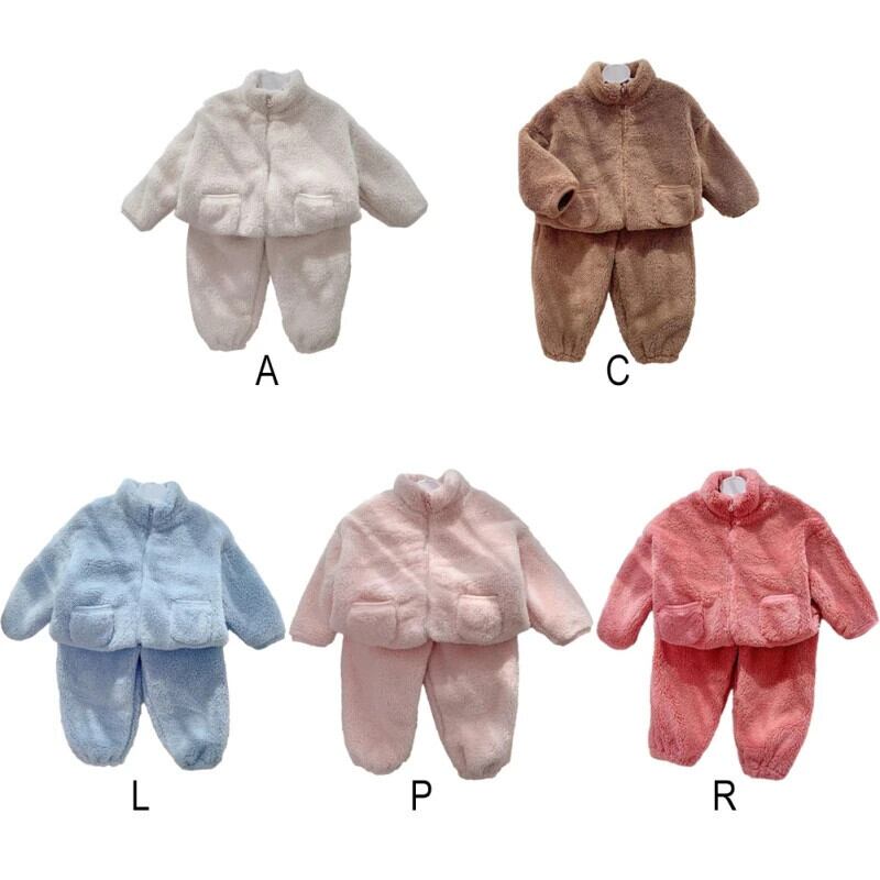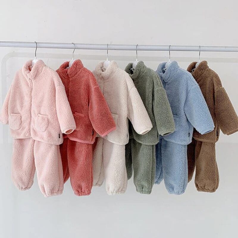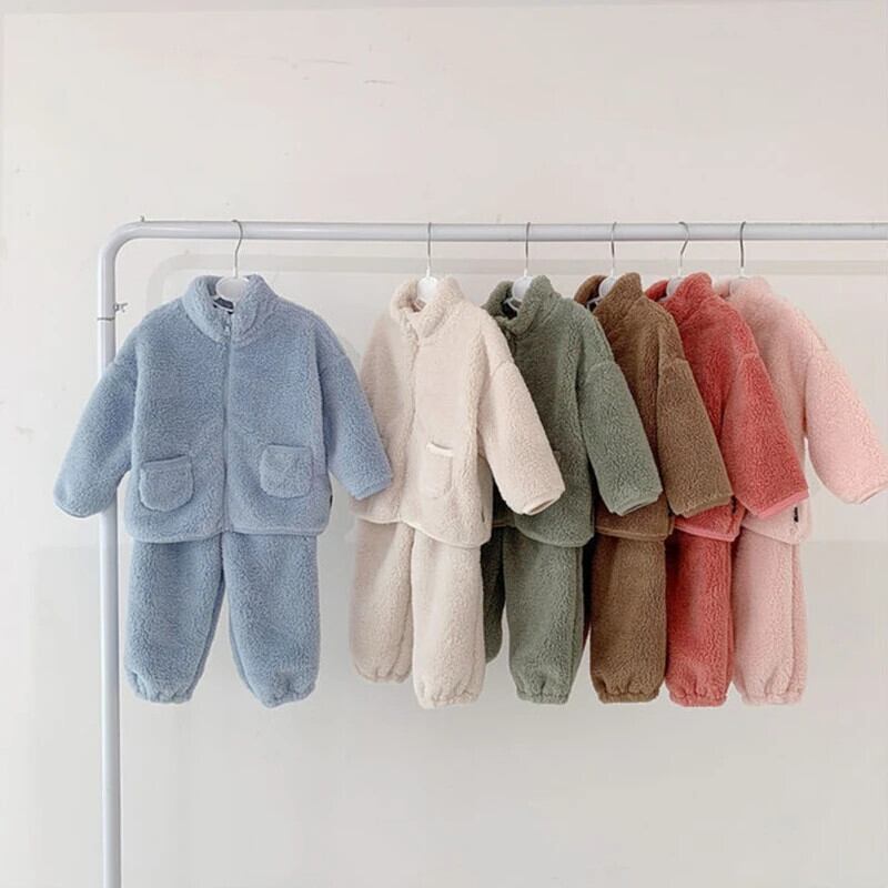 子供セット秋冬フランネル無地キッズベビー男子ぬいぐるみ肥厚ホームファー女子暖かいパジャマセット オータム 秋物 ウィンター 冬物 ソリッドカラー