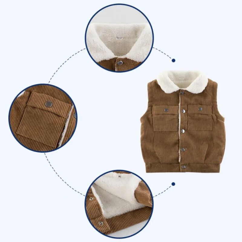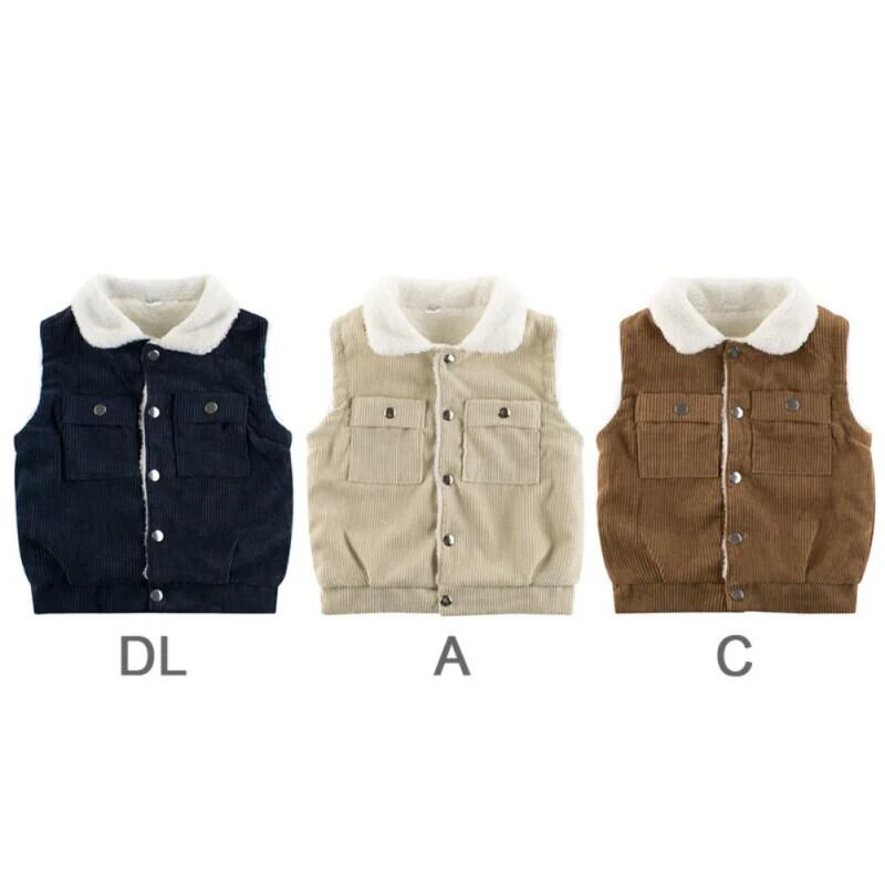秋冬子供ベスト男子女子ラムウールパッド入りシングルブレストサーマルベスト子供暖かいトップスアウター オータム 秋物 ウィンター 冬物 キッズ