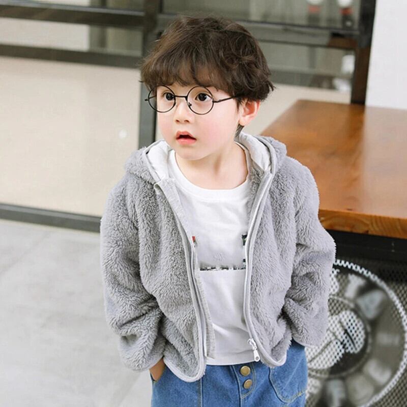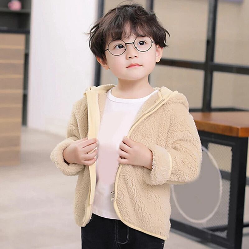 春秋ジッパーコーラルベルベットジャケット男子子供フード付きコート子供カーディガン女子パーカートップス スプリング 春物 オータム 秋物 キッズ